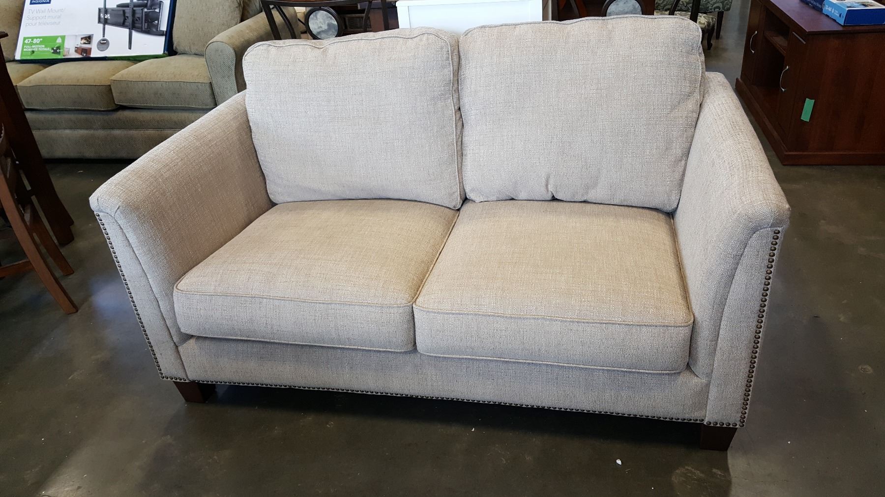 NEW ASHLEY SIGNATURE DESIGN CONTEMPORARY CLUB STYLE FABRIC LOVESEAT, WITH NAILHEAD DESIGN RETAIL $11