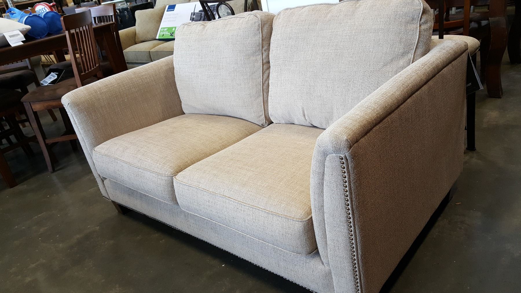 NEW ASHLEY SIGNATURE DESIGN CONTEMPORARY CLUB STYLE FABRIC LOVESEAT, WITH NAILHEAD DESIGN RETAIL $1199