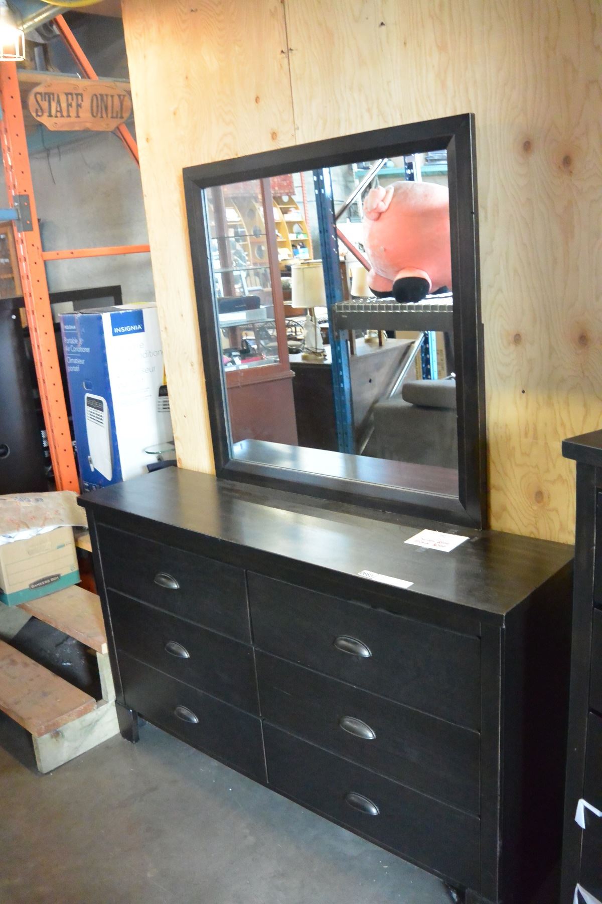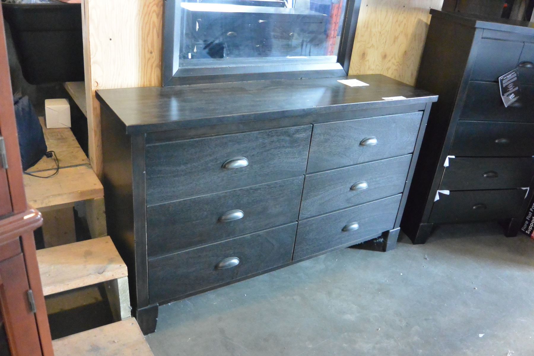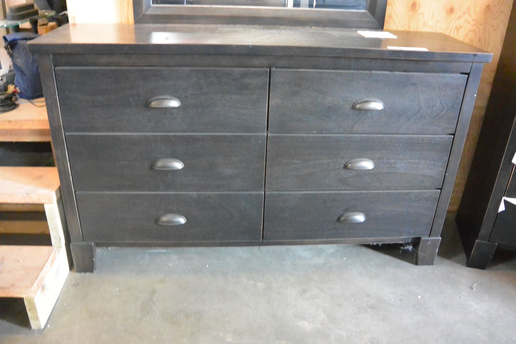 NEW ASHLEY SIGNATURE DESIGN DARK DISTRESSED 6 DRAWER DRESSER AND MIRROR, RETAIL $1,249