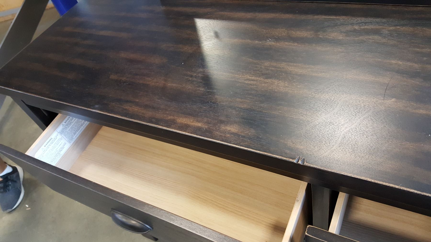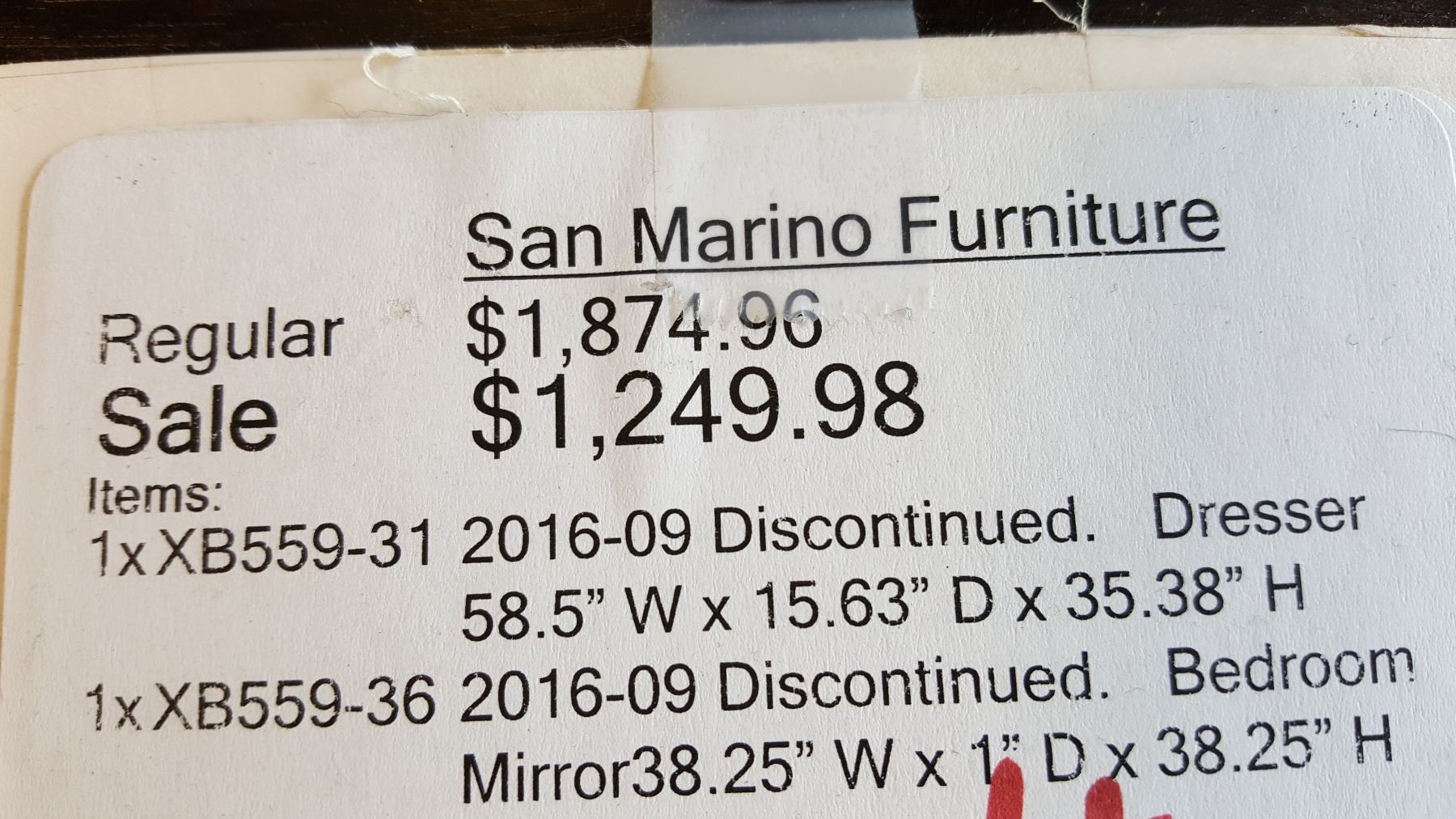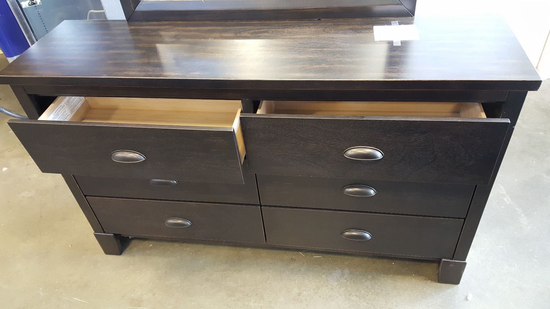 NEW ASHLEY SIGNATURE DESIGN DARK DISTRESSED 6 DRAWER DRESSER AND MIRROR, RETAIL $1,874