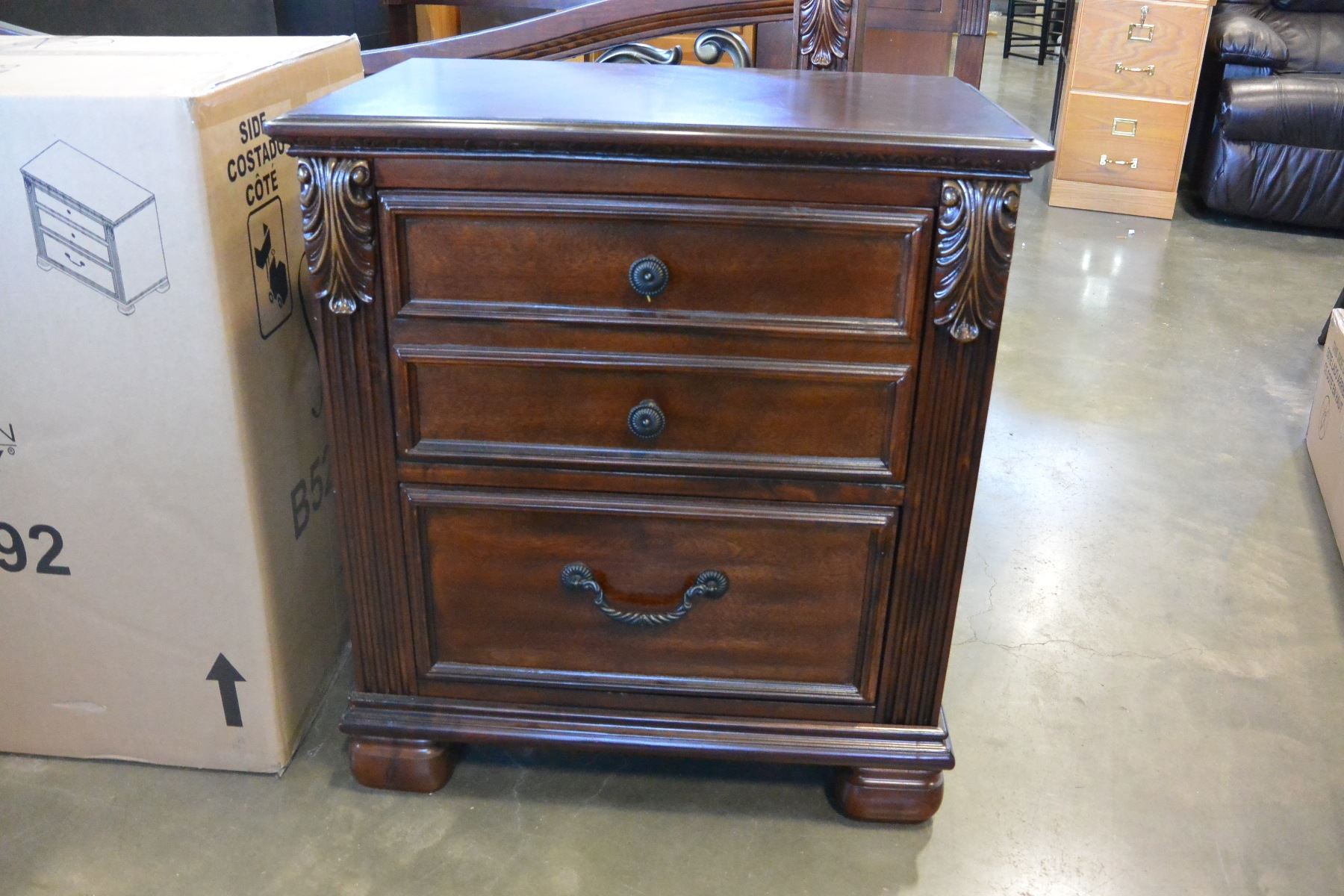 NEW ASHLEY SIGNATURE DESIGN KING SIZE PANEL BEDFRAME WITH PAIR OF NIGHSTANDS, RETAIL $1576L $1576TAN