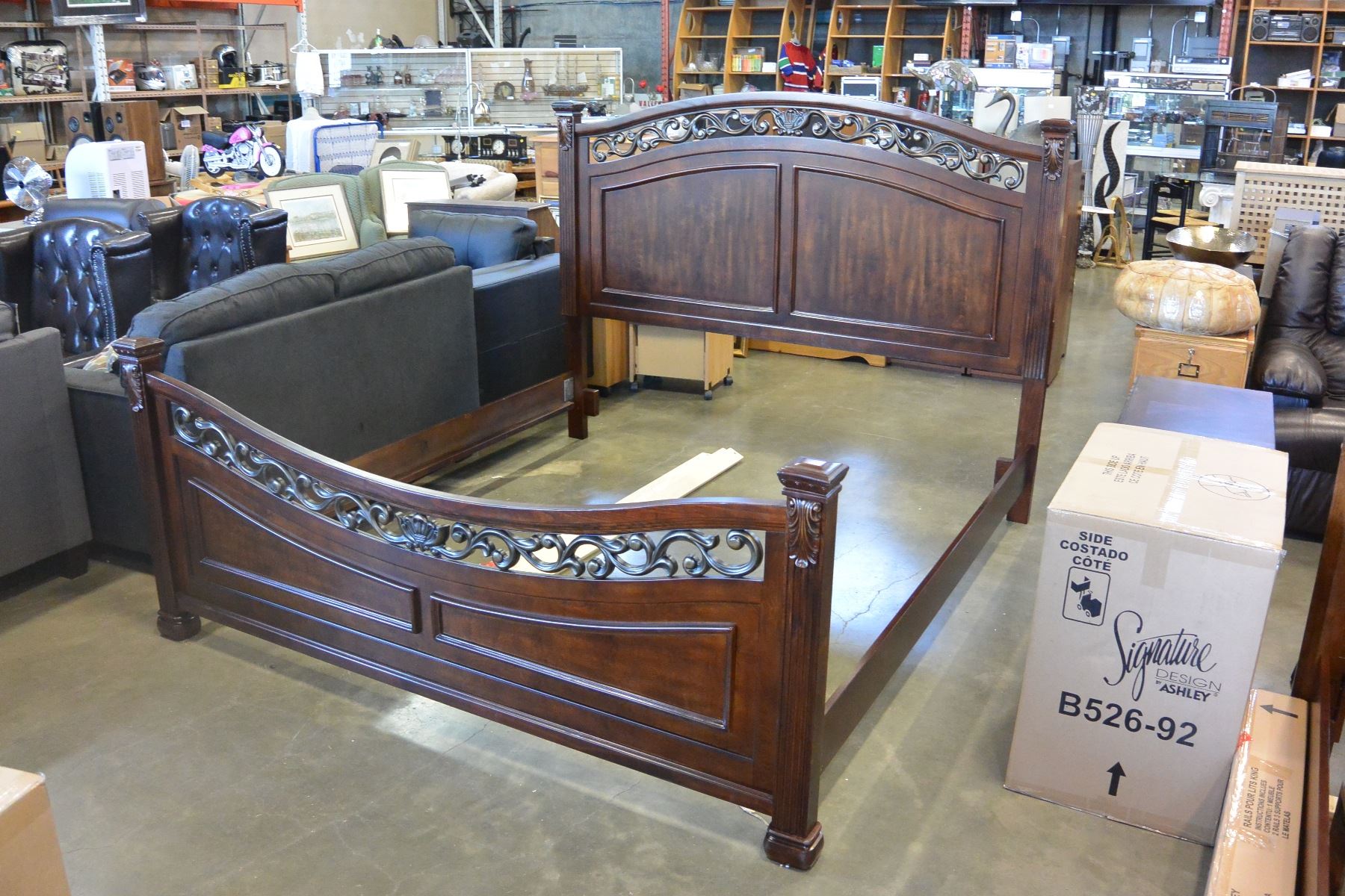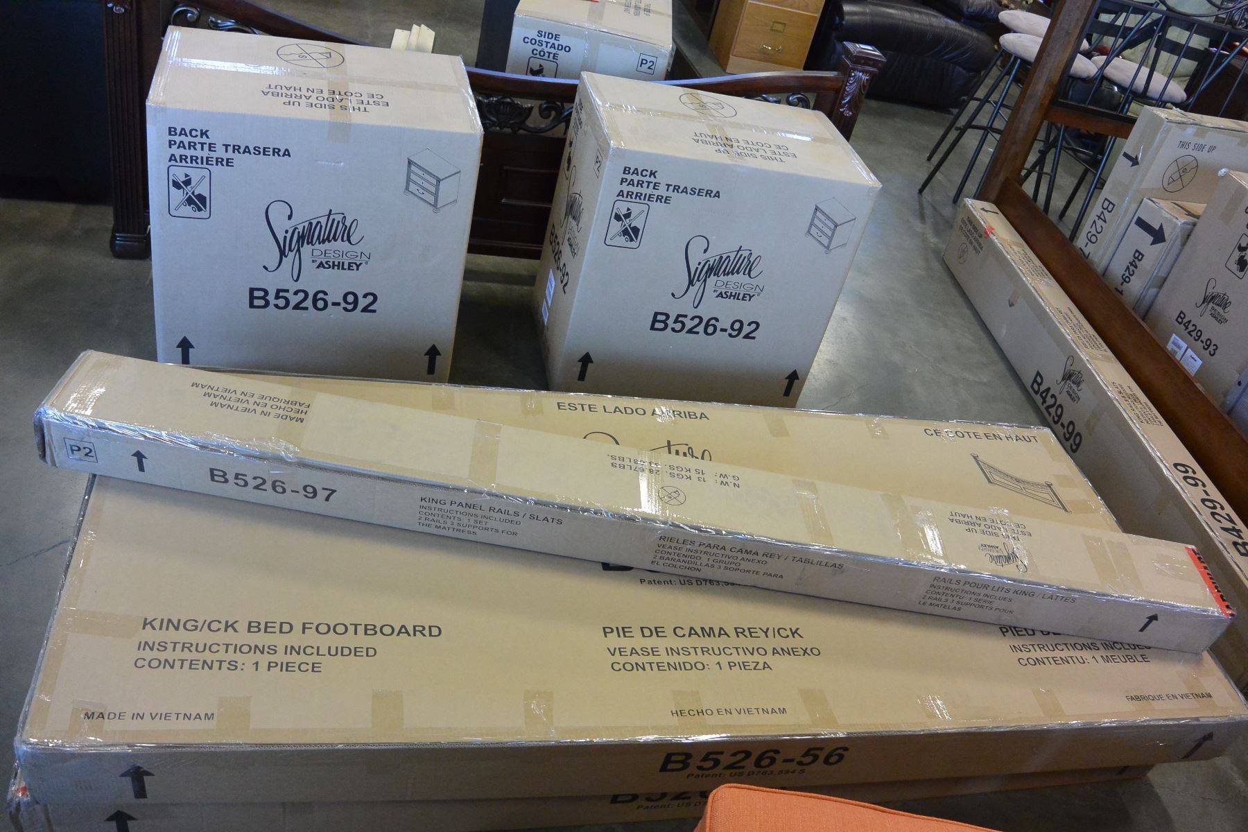 NEW ASHLEY SIGNATURE DESIGN KING SIZE PANEL BEDFRAME WITH PAIR OF NIGHSTANDS, RETAIL $1576L $1576TANDS, RETAIL