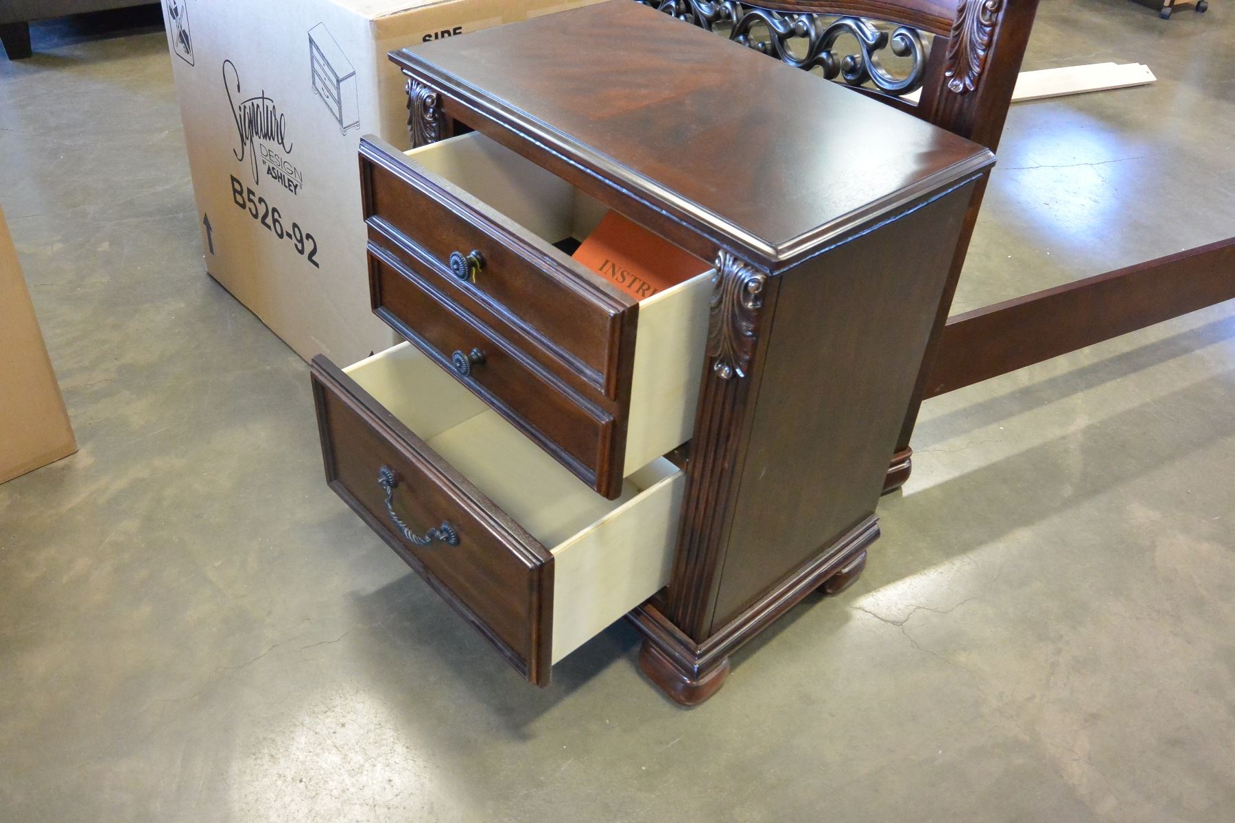 NEW ASHLEY SIGNATURE DESIGN KINGSIZE PANEL BEDFRAME, AND TWO MATCHING 2 DRAWER NIGHTSTANDS, RETAIL $1576