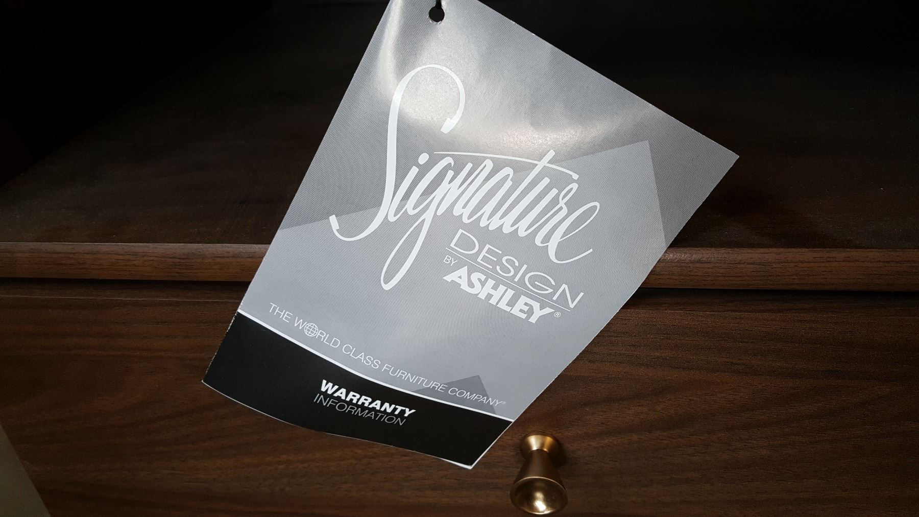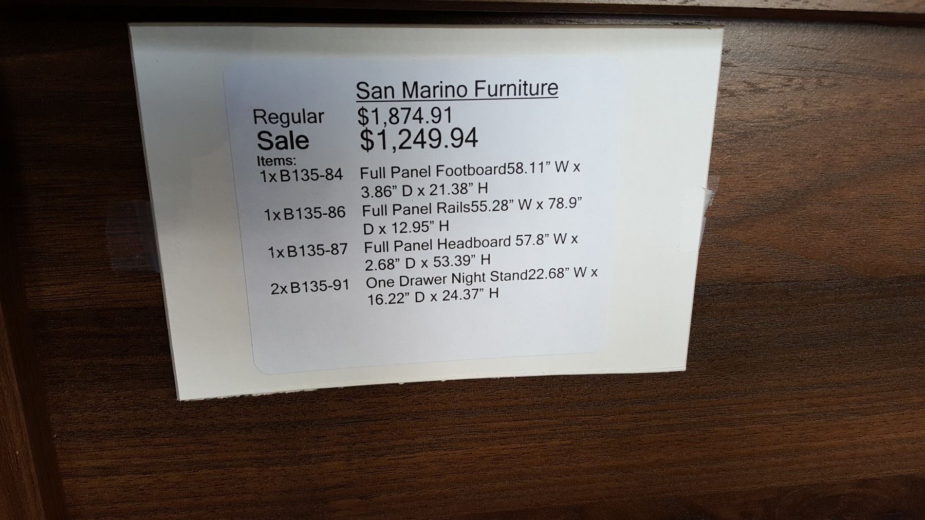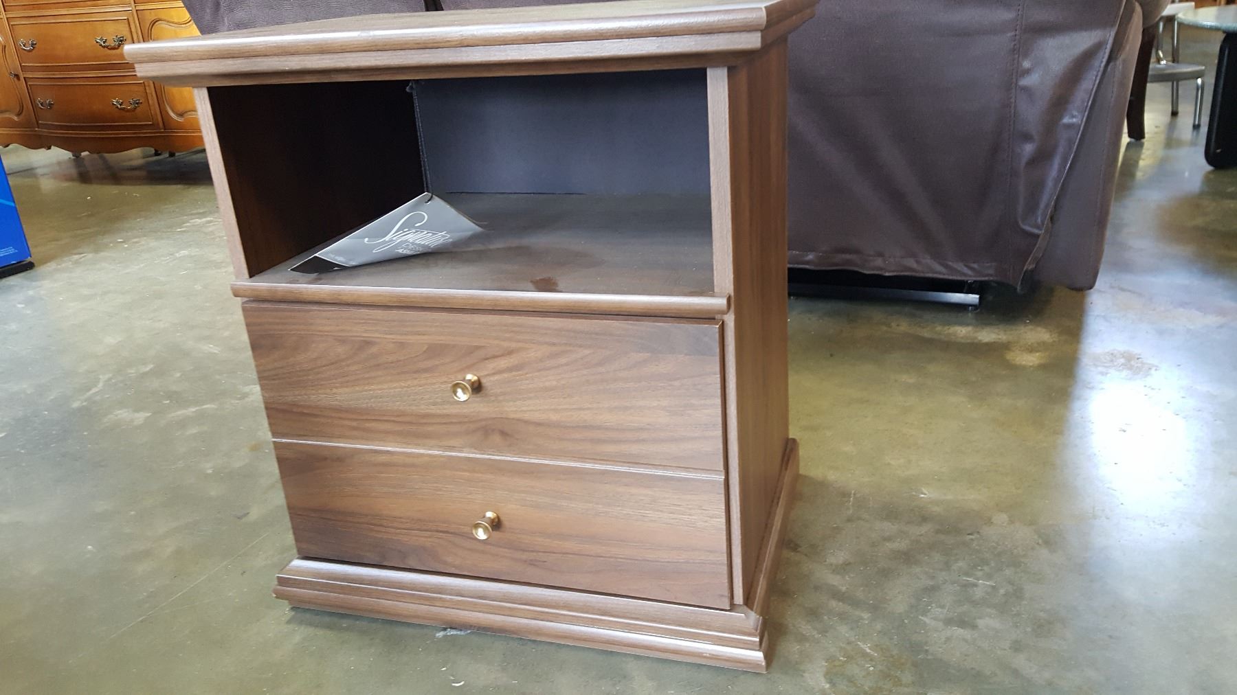 NEW ASHLEY SIGNATURE DESIGN MODERN BROWN WOOD GRAIN FINISH DOUBLE SIZE BEDFRAME AND NIGHTSTAND, RETAIL $1299
