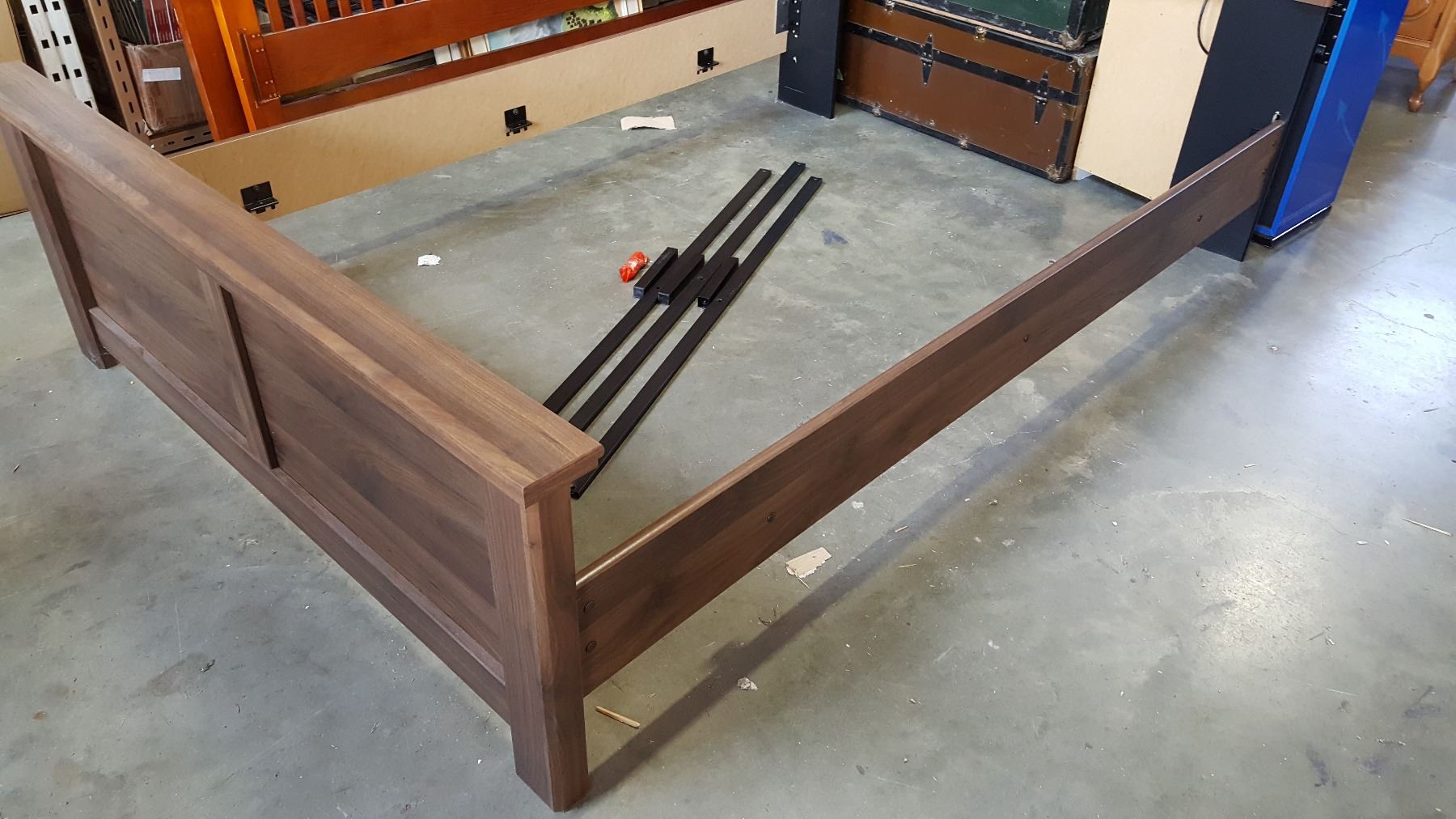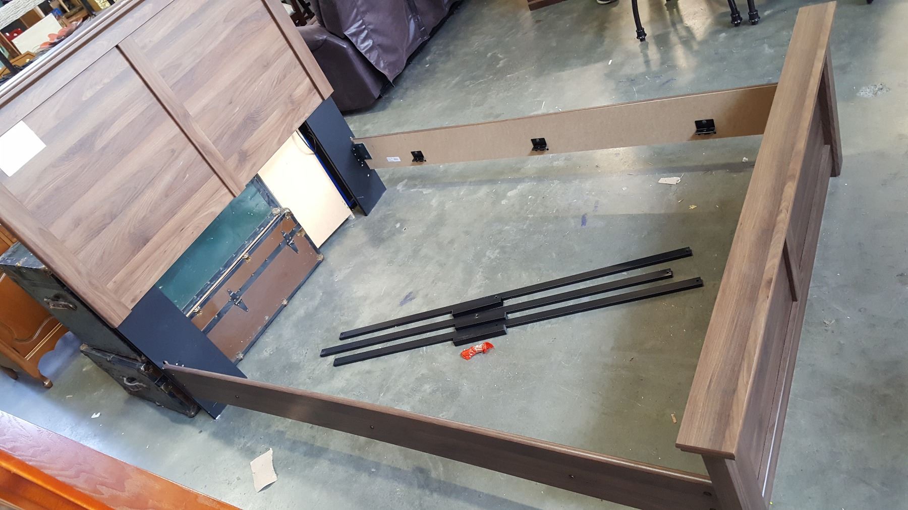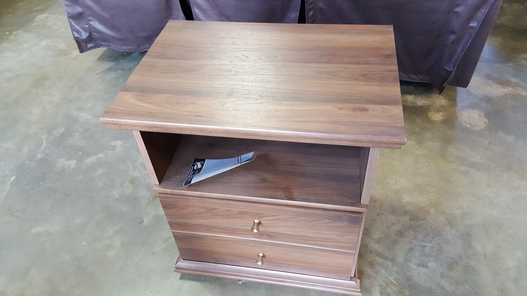 NEW ASHLEY SIGNATURE DESIGN MODERN BROWN WOOD GRAIN FINISH DOUBLE SIZE BEDFRAME AND NIGHTSTAND, RETAIL $1299