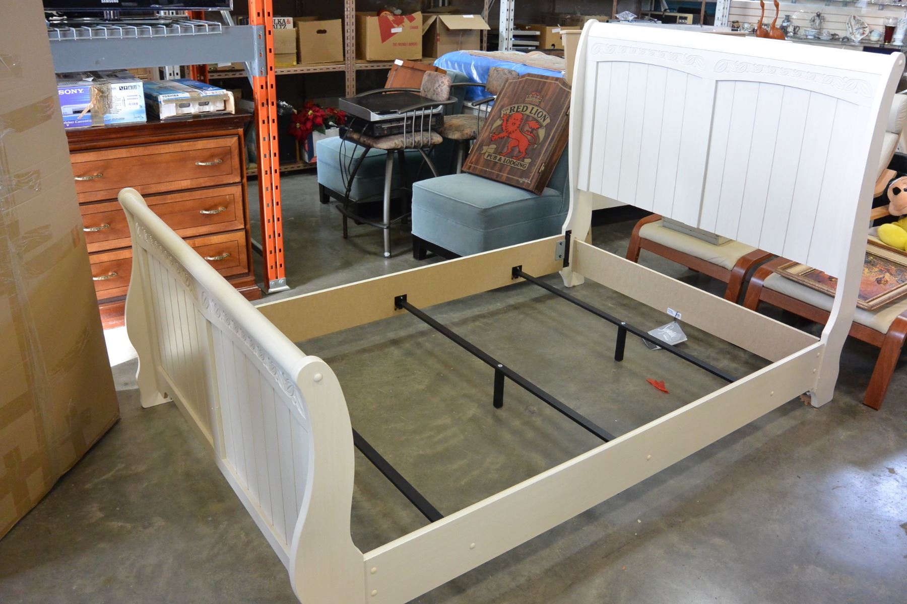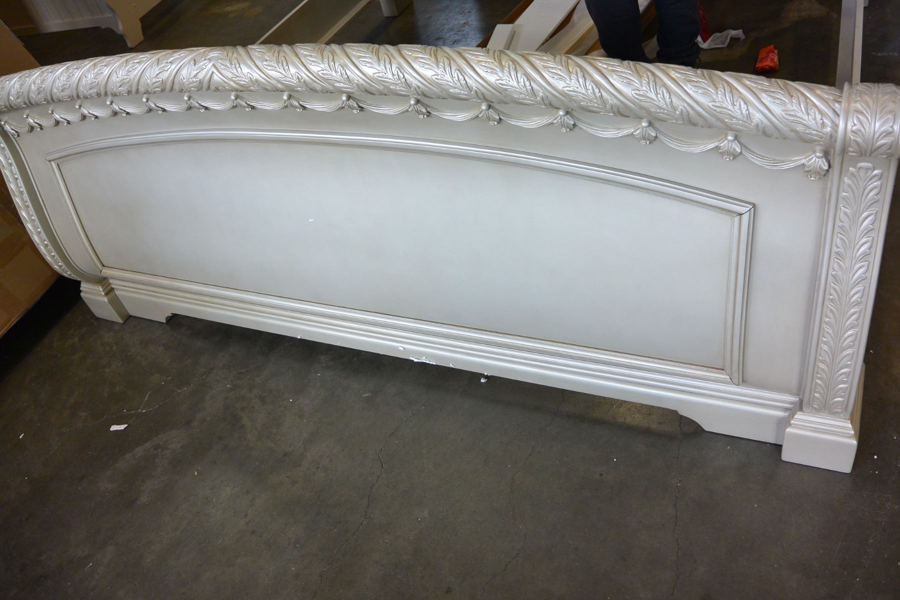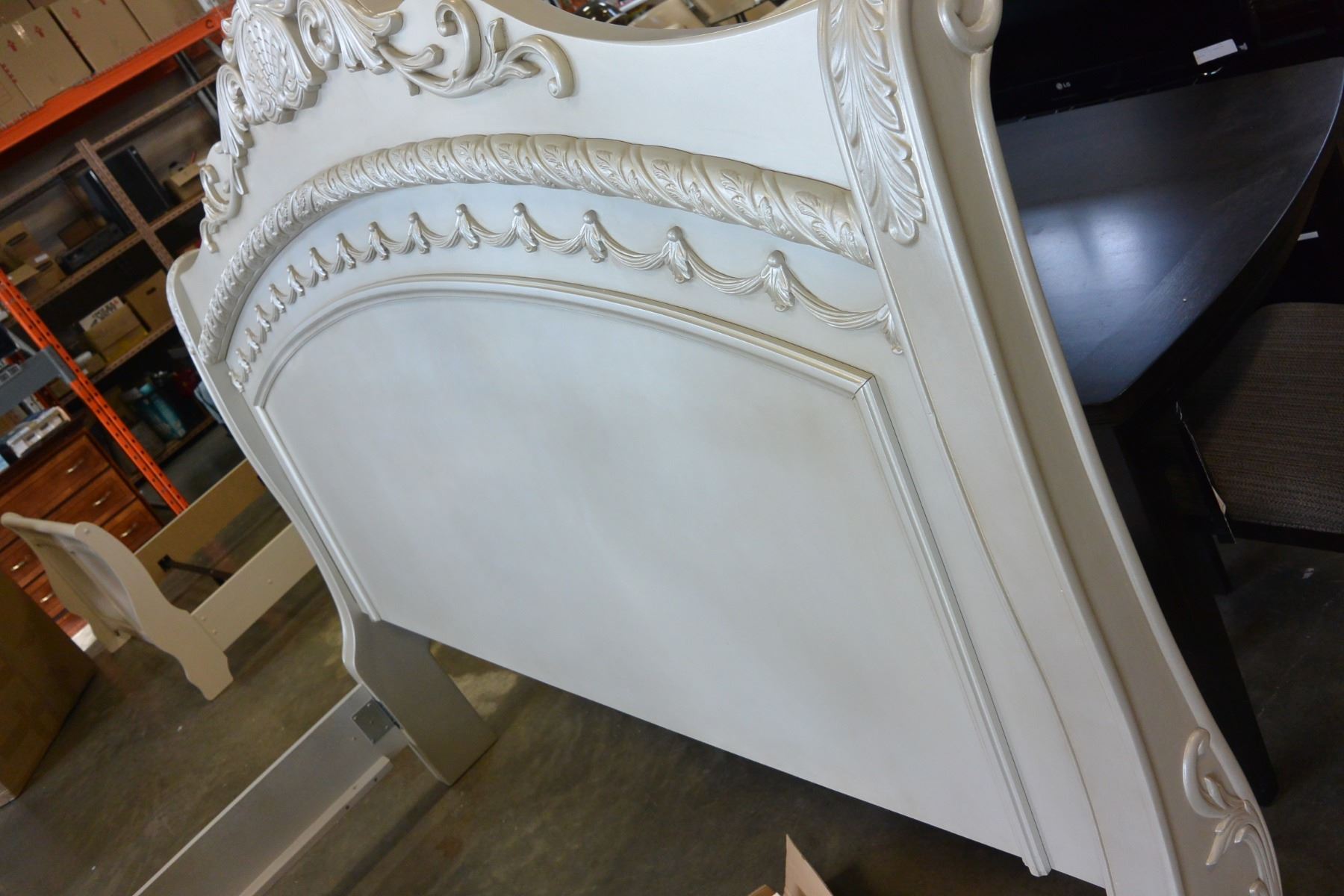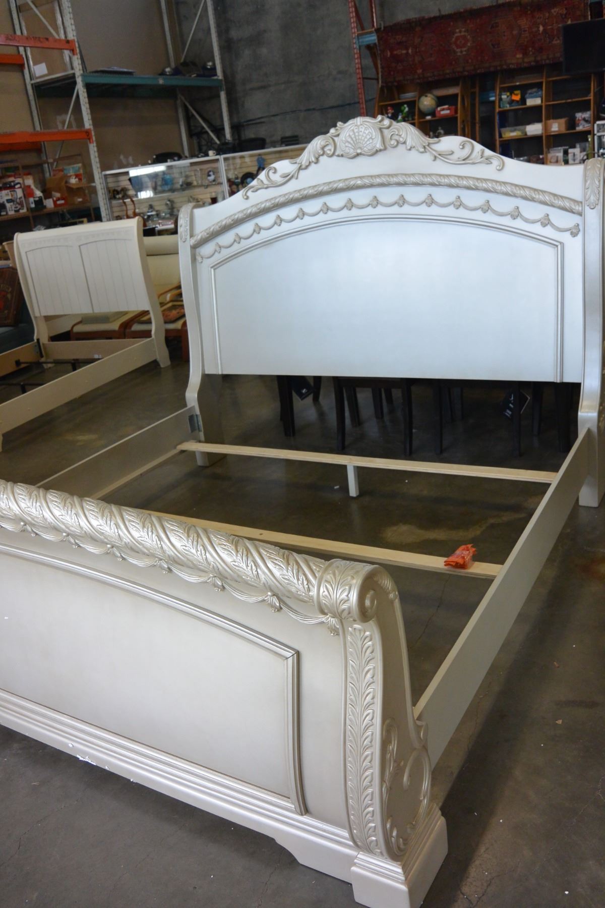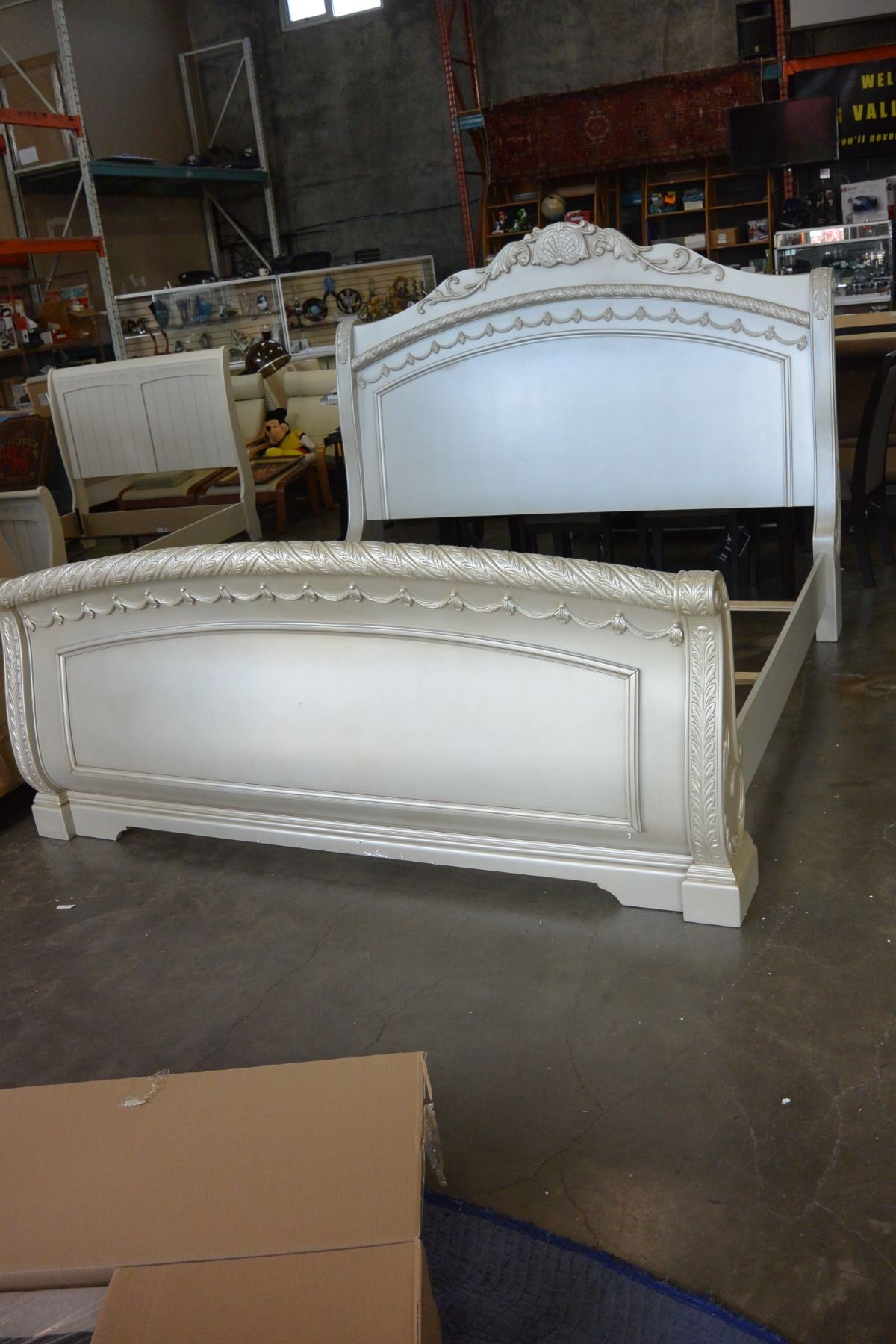 NEW ASHLEY SIGNATURE DESIGN WHITE CARVED SLEIUGH BEDFRAME RETAIL $2999