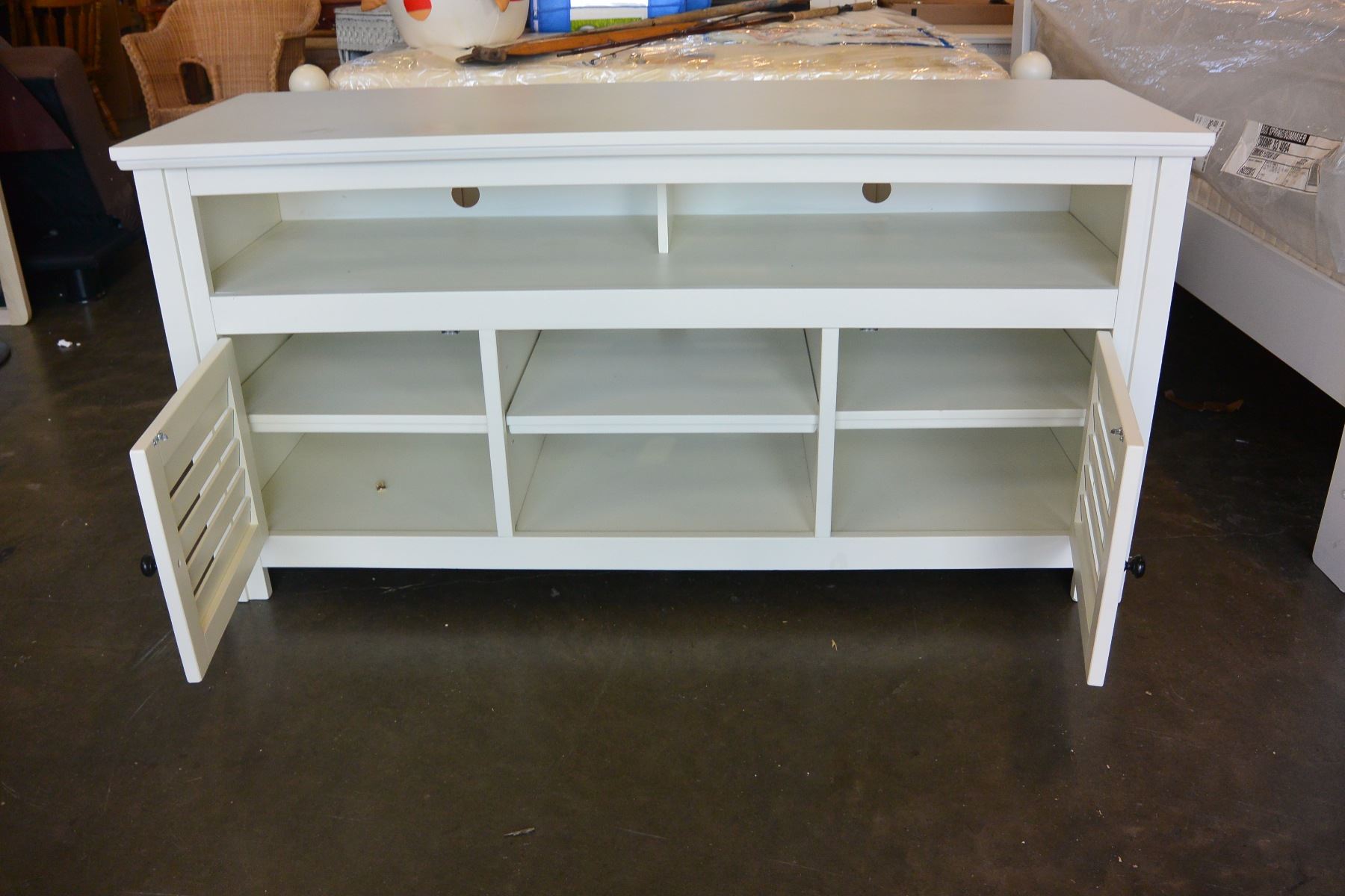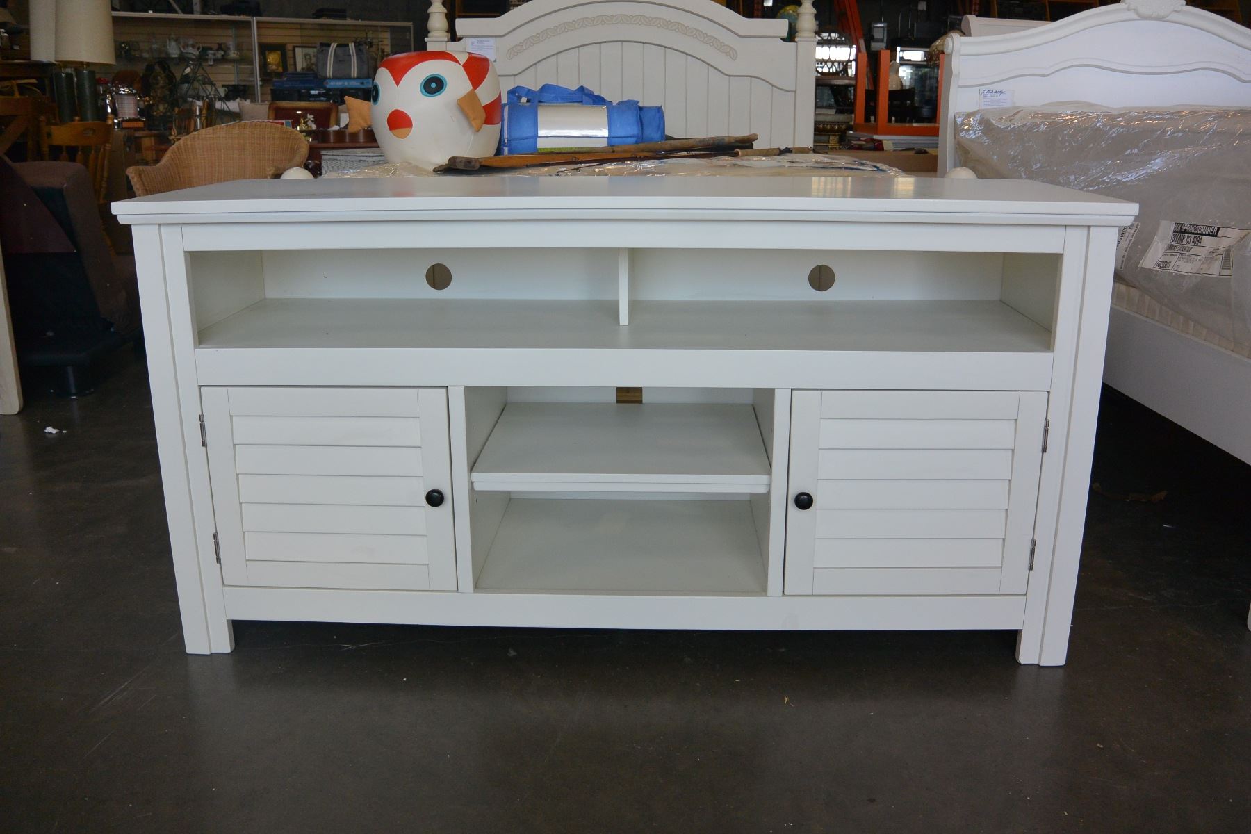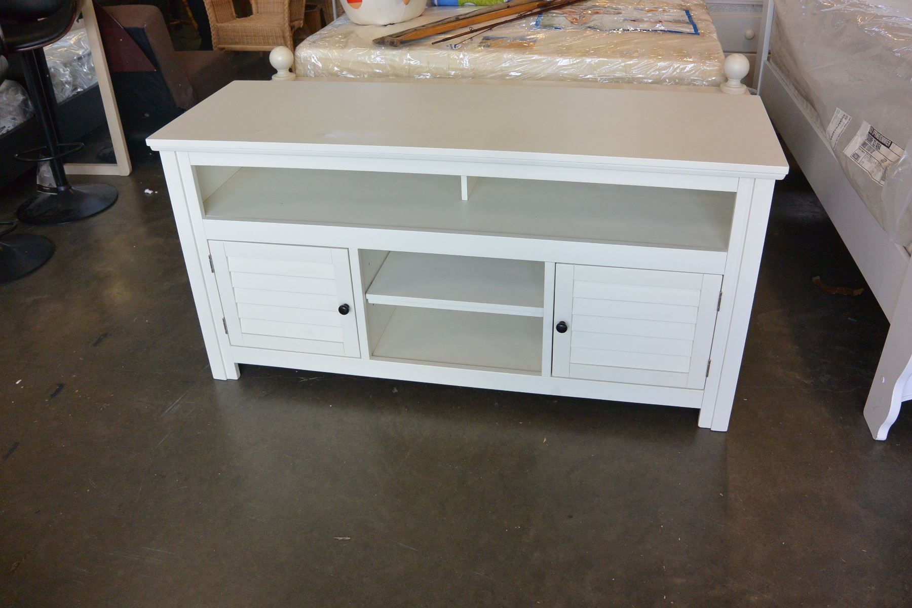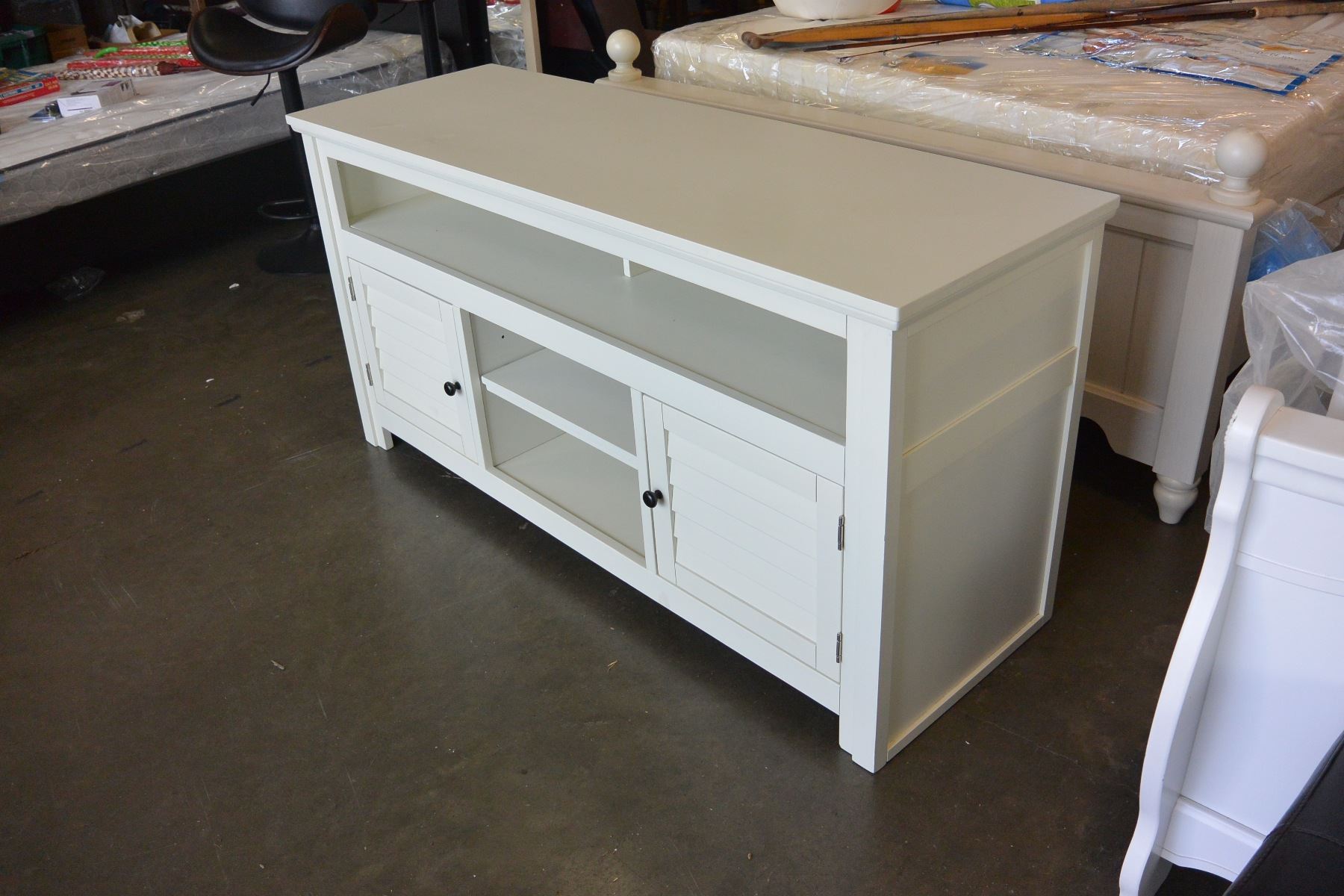 NEW ASHLEY SIGNATURE DESIGN WHITE FINISH CONTEMPORARY TV STAND WITH STORAGE RETAIL $1299