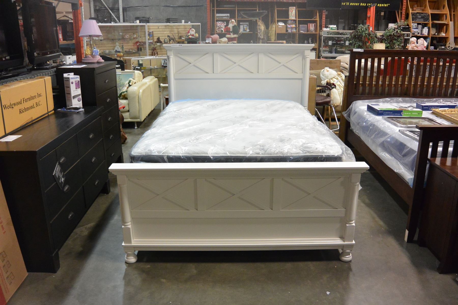 NEW ASHLEY SIGNATURE QUEENSIZE WHITE CONTEMPORARY PANEL BEDFRAME RETAIL $1199
