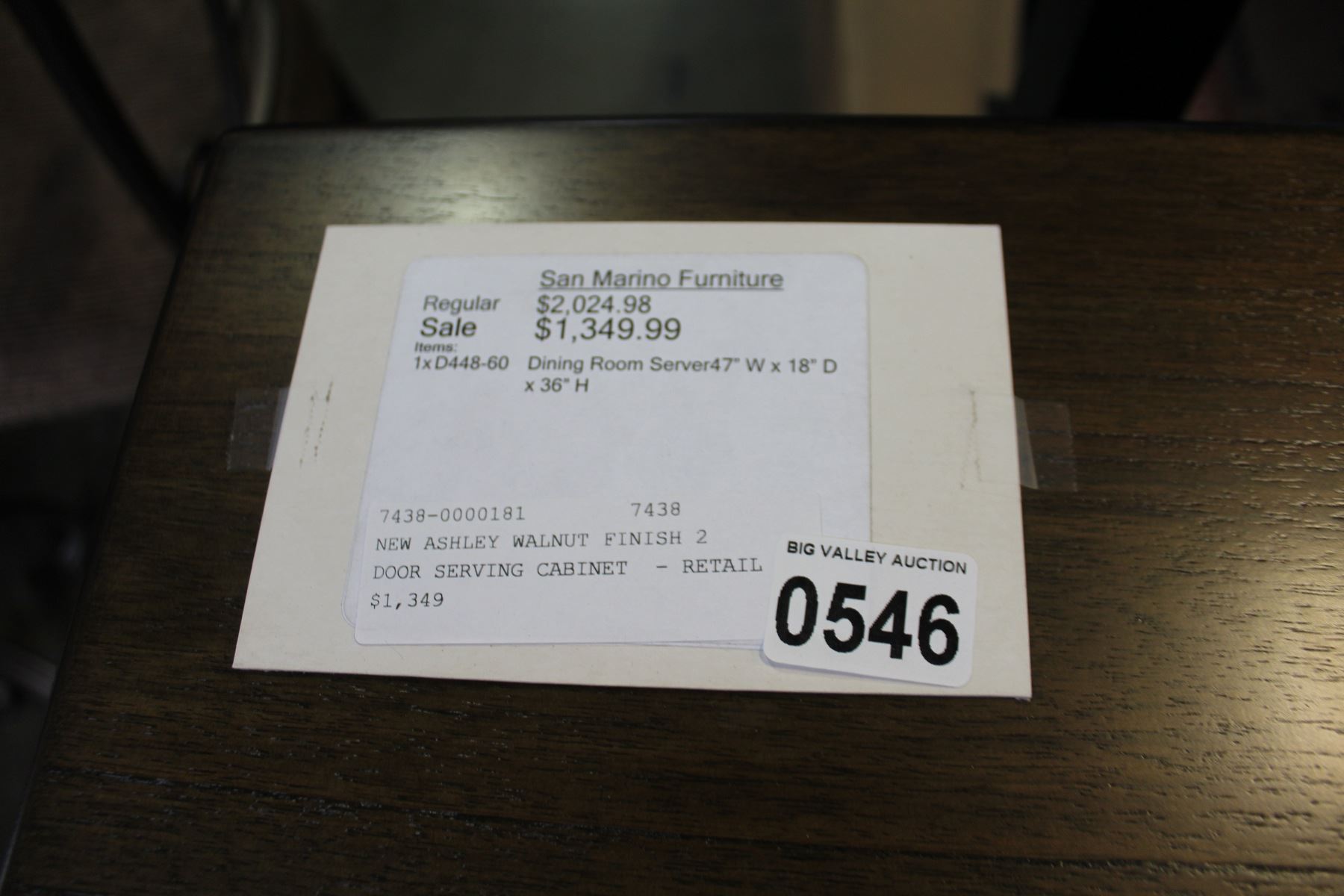 NEW ASHLEY WALNUT FINISH 2 DOOR SERVING CABINET - RETAIL $1,349