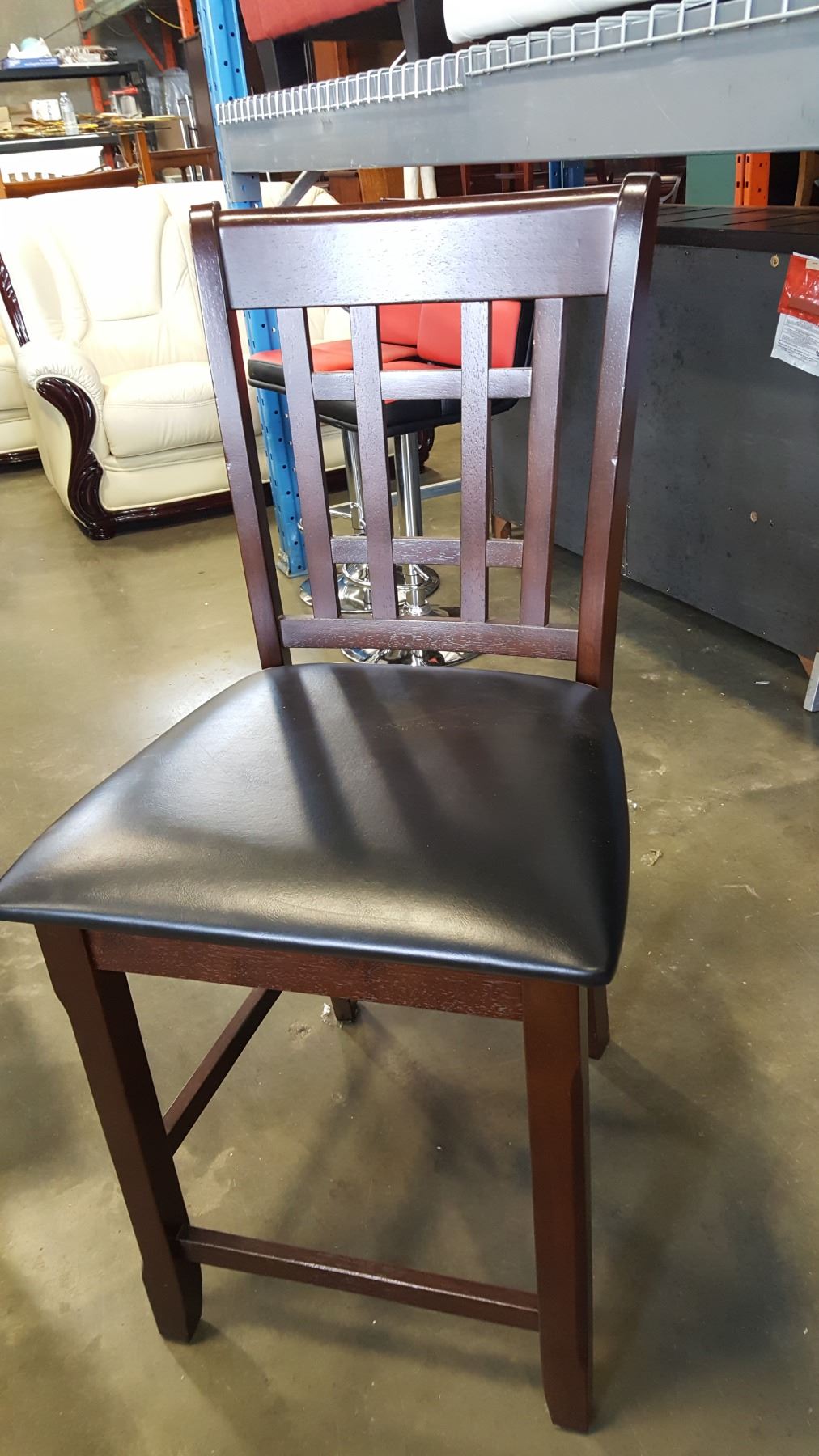 NEW ASHLEY WOOD BAR STOOL WITH BLACK LEATHER SEAT