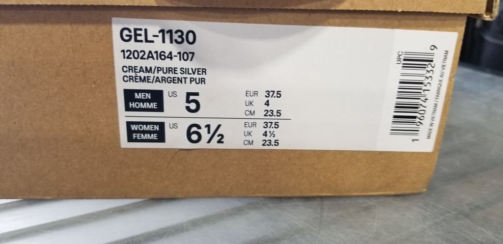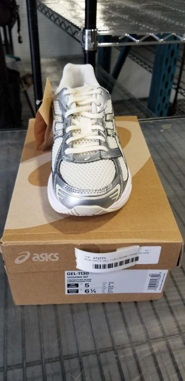NEW ASICS GEL-1130 CREAM / PURE SILVER SIZE US WOMENS 6.5, MENS 5
