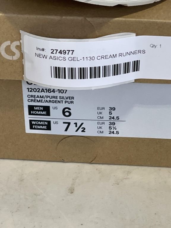 NEW ASICS GEL-1130 CREAM RUNNERS SIZE US 6 MEN, 7.5 WOMENS