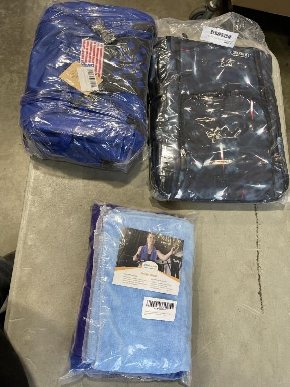 NEW BACKPACK, NEW DUFFEL BAG AND SET OF MICROFIBRE TOWLES