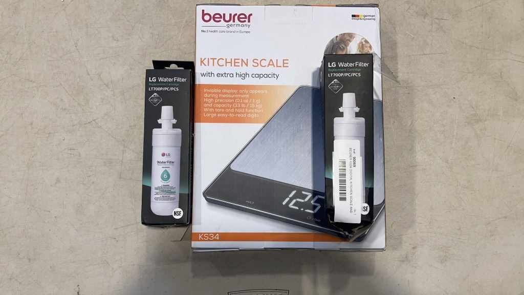 NEW BEURER KS34 DIGITAL KITCHEN SCALE AND 2 LG WATER FILTERS