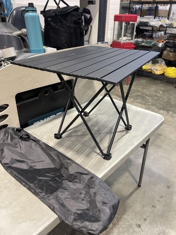 NEW BLACK METAL ROLLING FOLD UP CAMP TABLE, 27 X 18 IMNCH