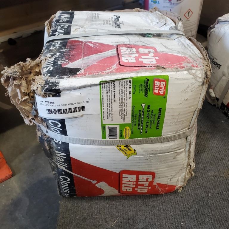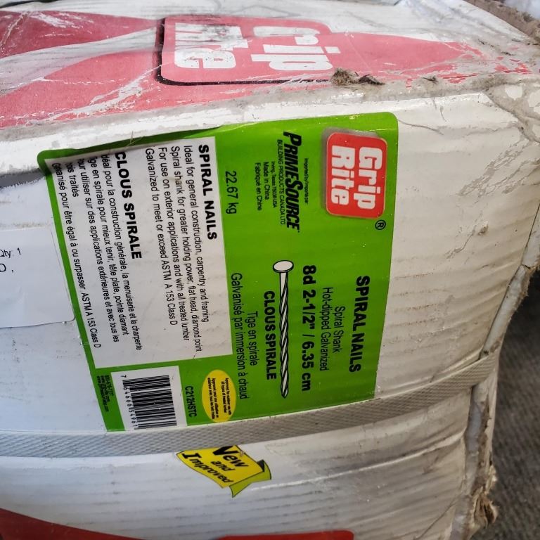 NEW BOX OF 2-1/2 INCH SPRIAL NAILS, 8D , 50LB BOX