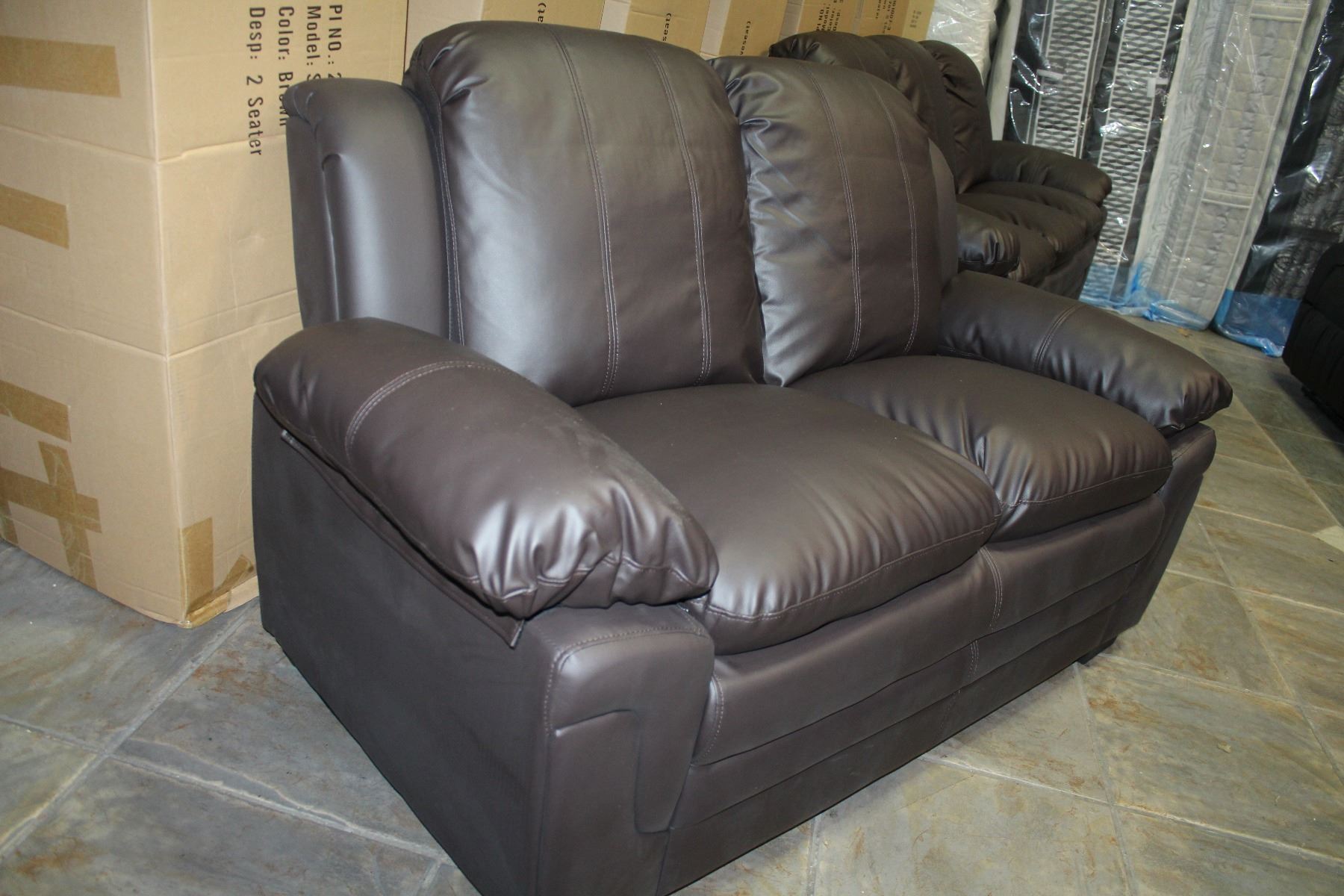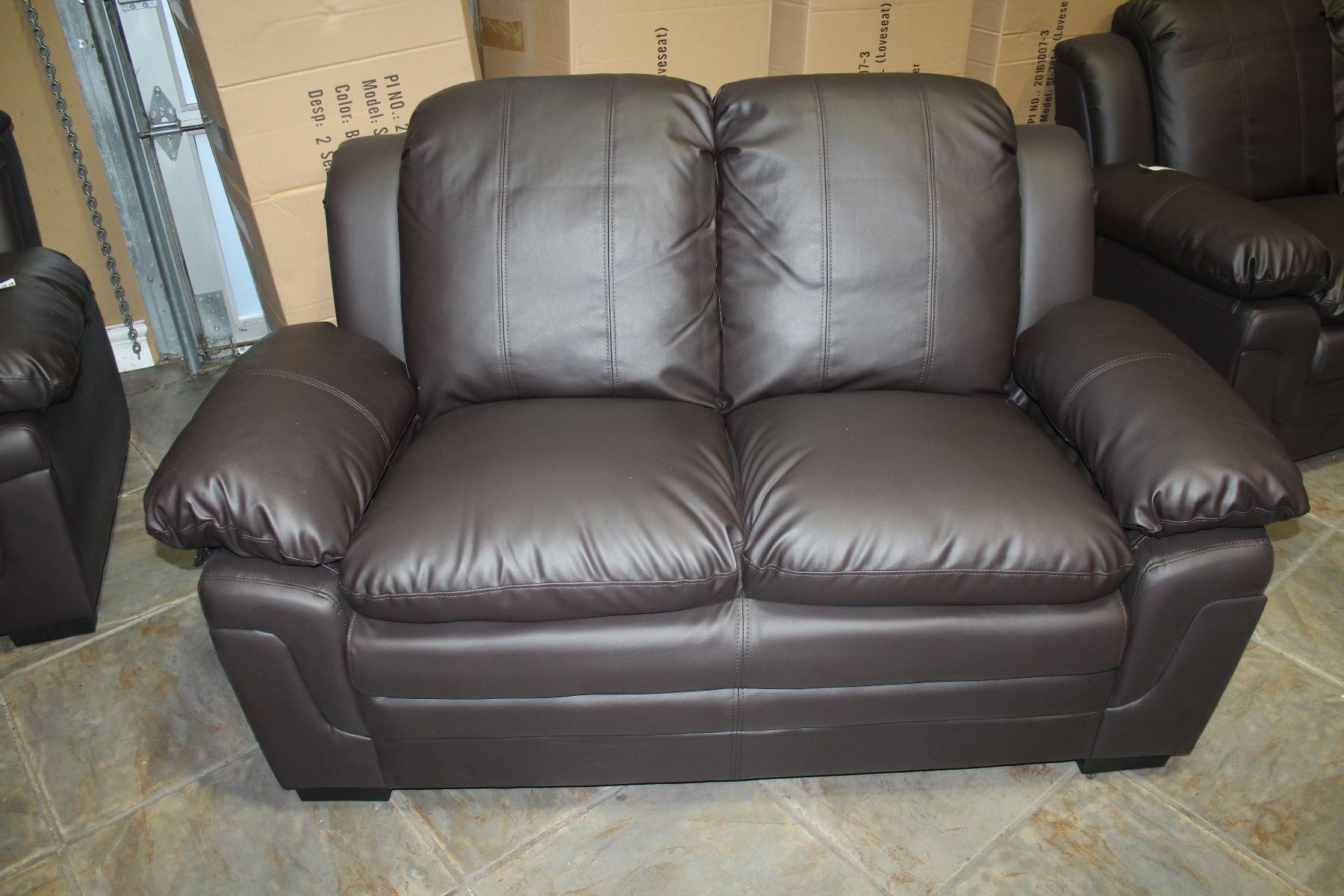 NEW BROWN LEATHER ASHLEY DESIGN LOVESEAT, CONTEMPORARY COMFORTABLE SEATING, RETAIL $949