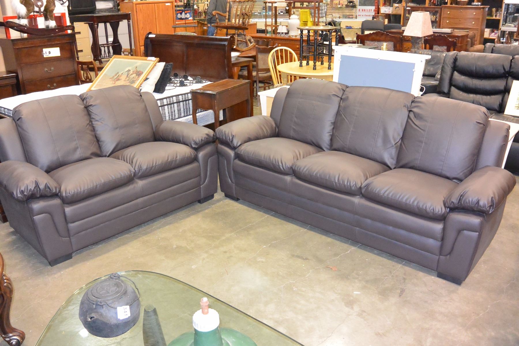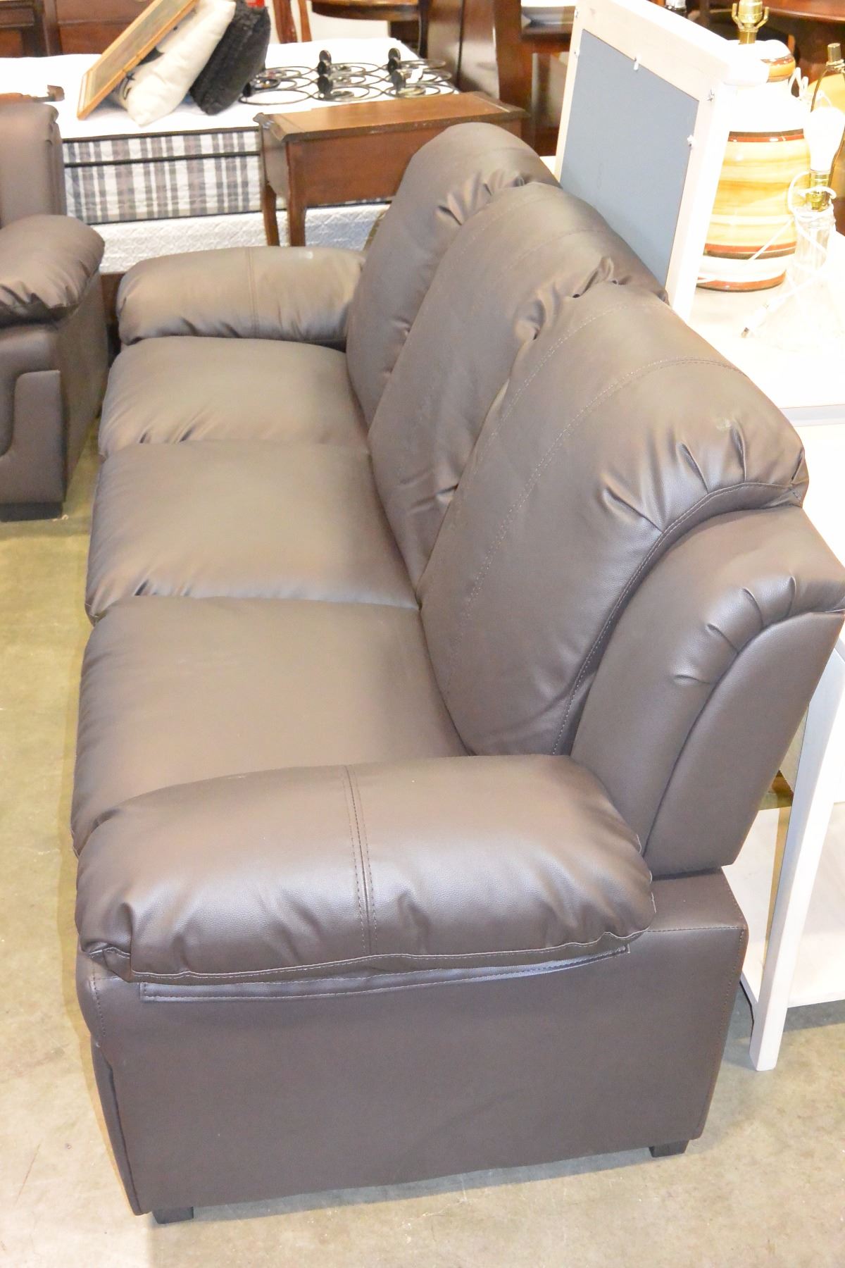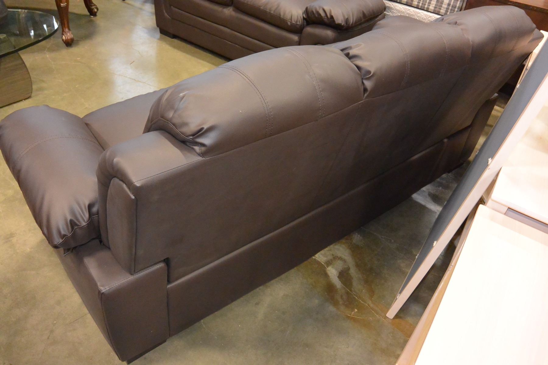 NEW BROWN LEATHER ASHLEY DESIGN SOFA AND LOVESEAT, CONTEMPORARY COMFORTABLE SEATING, RETAIL $2199