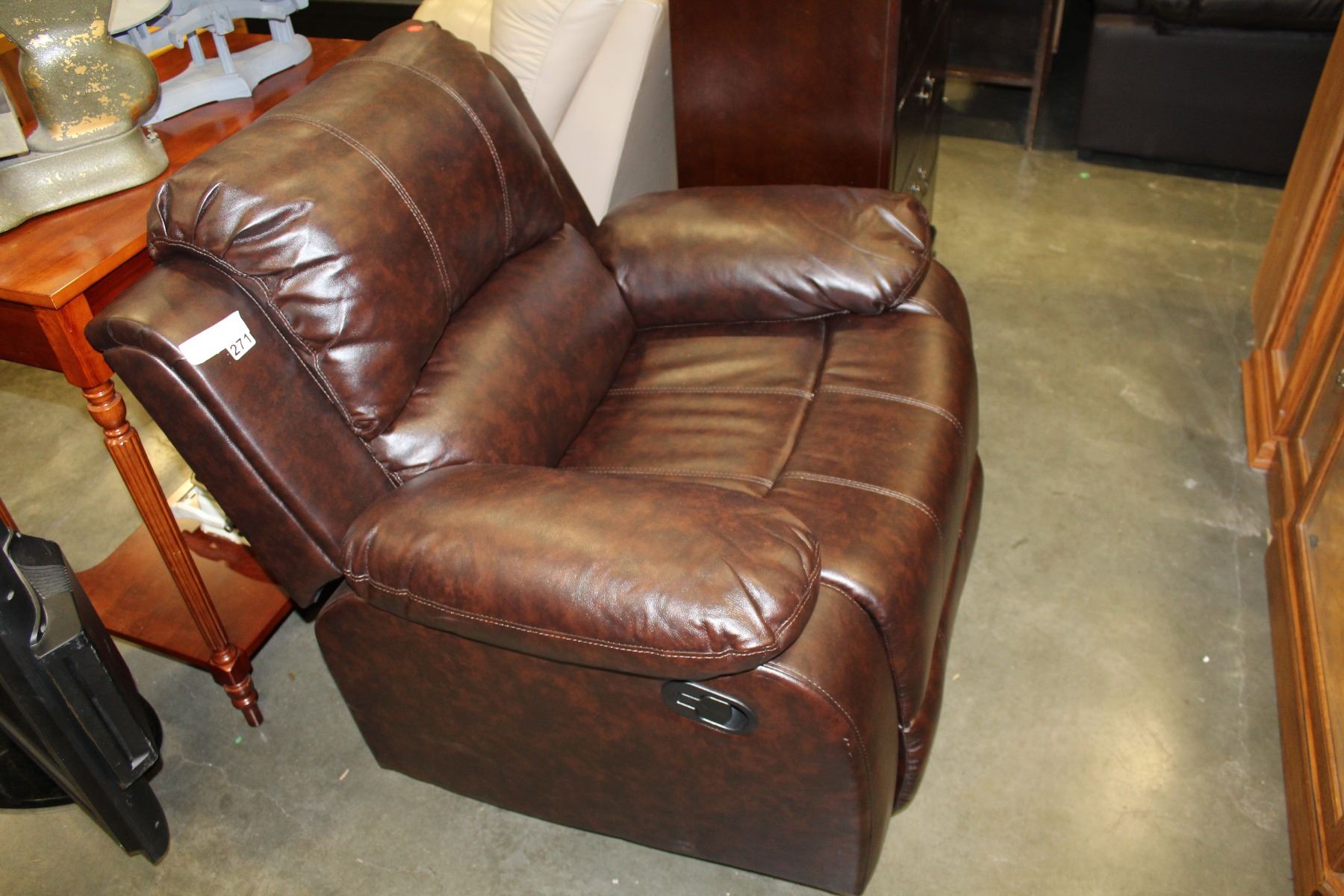 NEW BROWN LEATHER LOOK ROCKING RECLINER CHAIR RETAIL $799