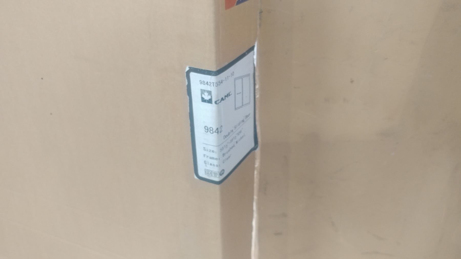 NEW CAML DOUBLE SLIDING GLASS AND BRUSHED NICKEL SHOWER DOOR IN BOX