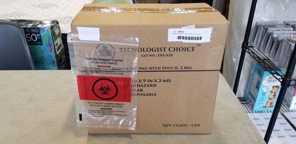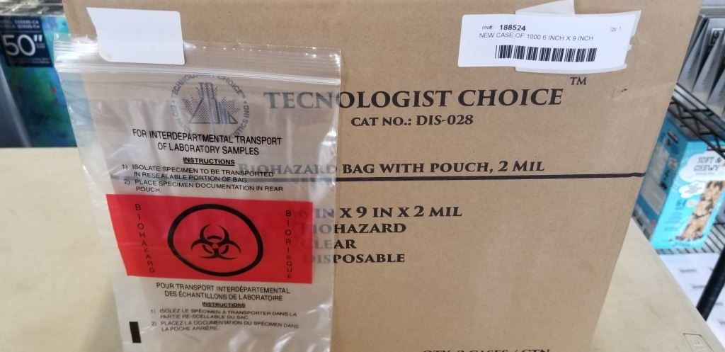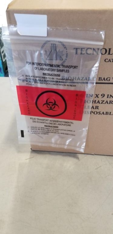 NEW CASE OF 1000 6 INCH X 9 INCH BIOHAZARD ZIPLOC BAGS, 2 MIL