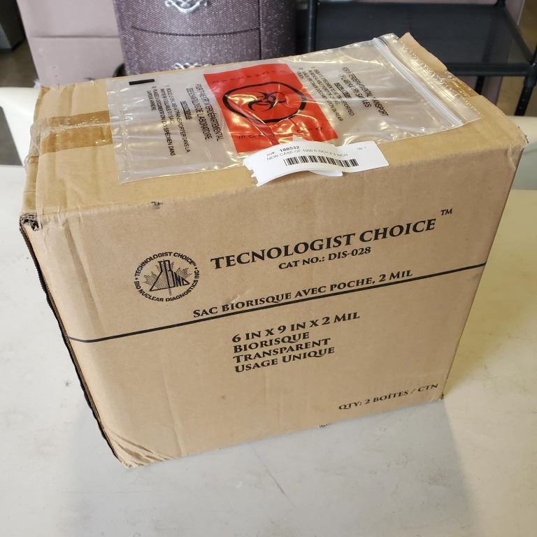 NEW CASE OF 1000 6 INCH X 9 INCH BIOHAZARD ZIPLOC BAGS, 2 MIL