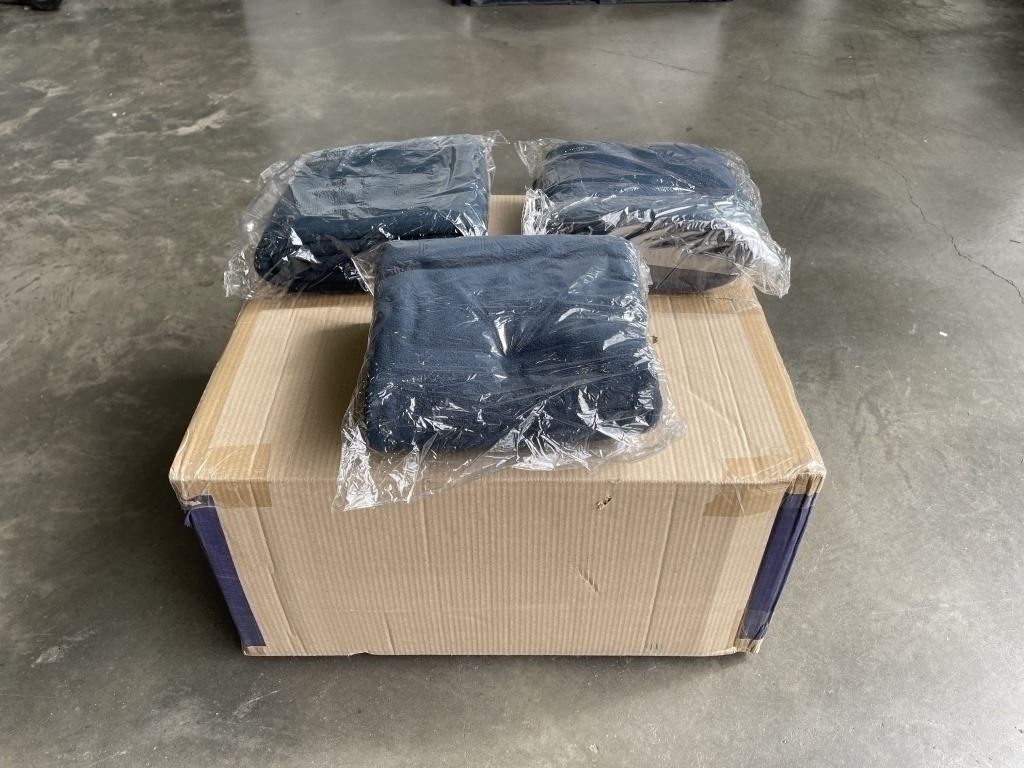 NEW CASE OF 9 OUTDOOR THROW PILLOWS WITH 3 NEW OUTDOOR FLEECE BLANKETS TOTALL RETAIL OVER $250 6 SQAURE PILLOWS 19 X 19 INCH ,16 X 16 AND 3 LUMBAR PILLOWS ARE 22 X 12 INCH, BLANKETS ARE 46 INCH X 60 INCH