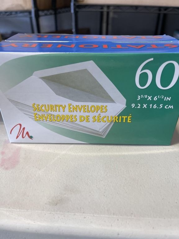 NEW CASE OF ENVELOPES - 60 PER BOX, 36 BOXES I CASE, 2160 TOTAL