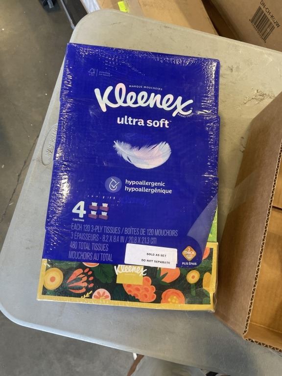 NEW CASE OF KLEENEX, PACK OF MR SIGA SCRUB SPONGES, AND 6 PACKS OF DISPOSER AND PIPE CLEANER