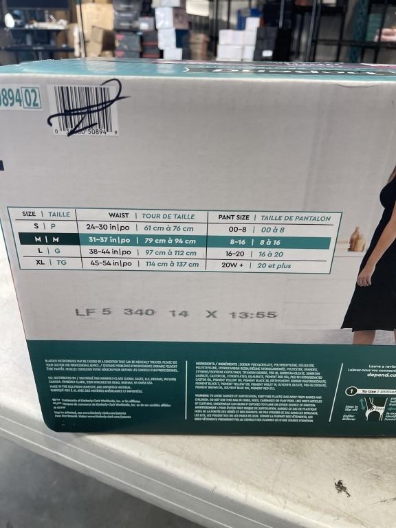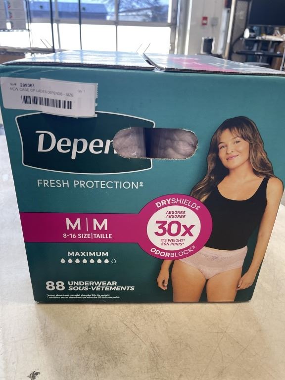 NEW CASE OF LADIES DEPENDS - SIZE MEDIUM, 88 PER BOX