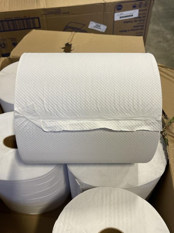 NEW CASE OF LEAF PREMIUM HAND ROLL TOWELS, WHITE 1 PLY, 6 ROLLS PER CASE