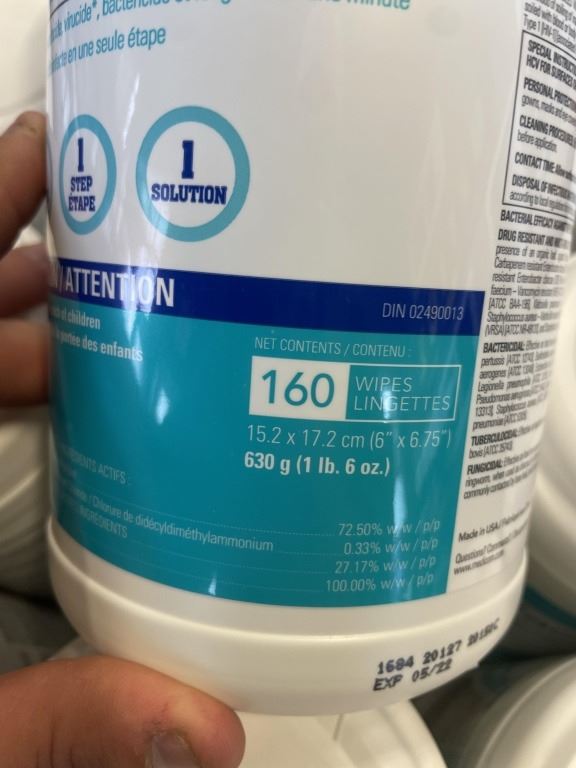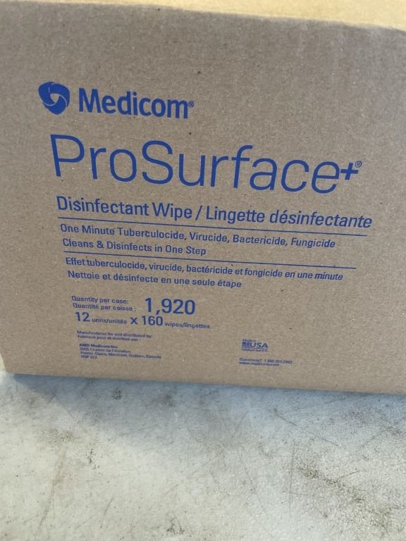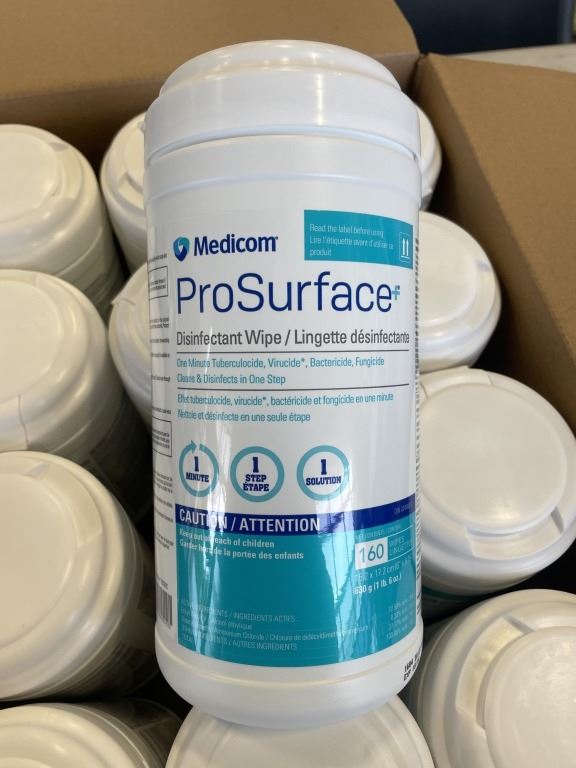 NEW CASE OF PROSURFACE DISINFECTANT WIPES, 12 TUBS, WITH A TOTAL 1920 WIPES