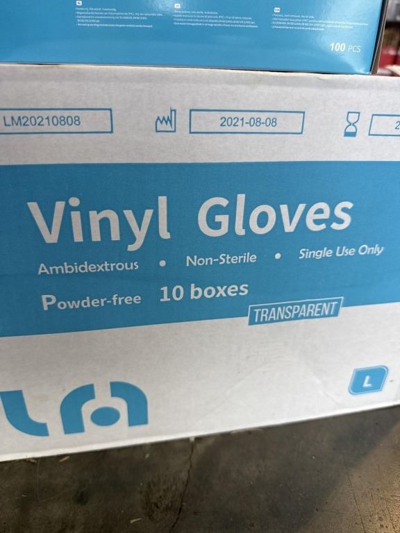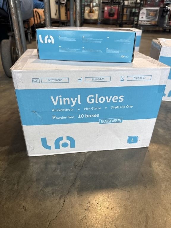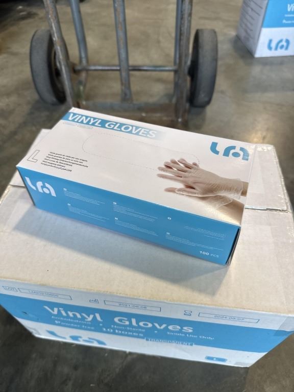 NEW CASE OF SIZE LARGE VINYL GLOVES, 10 BOXES OF 100PC