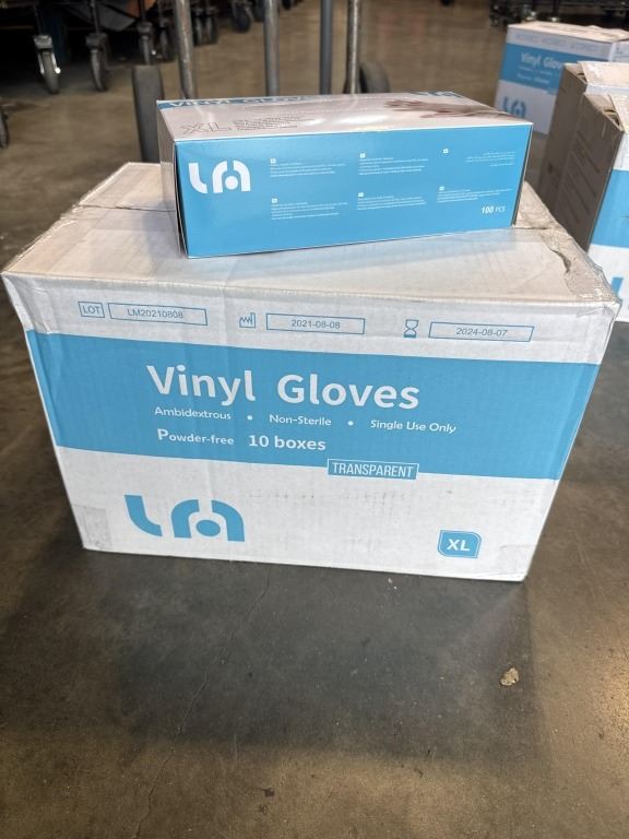 NEW CASE OF SIZE X- LARGE VINYL GLOVES, 10 BOXES OF 100PC