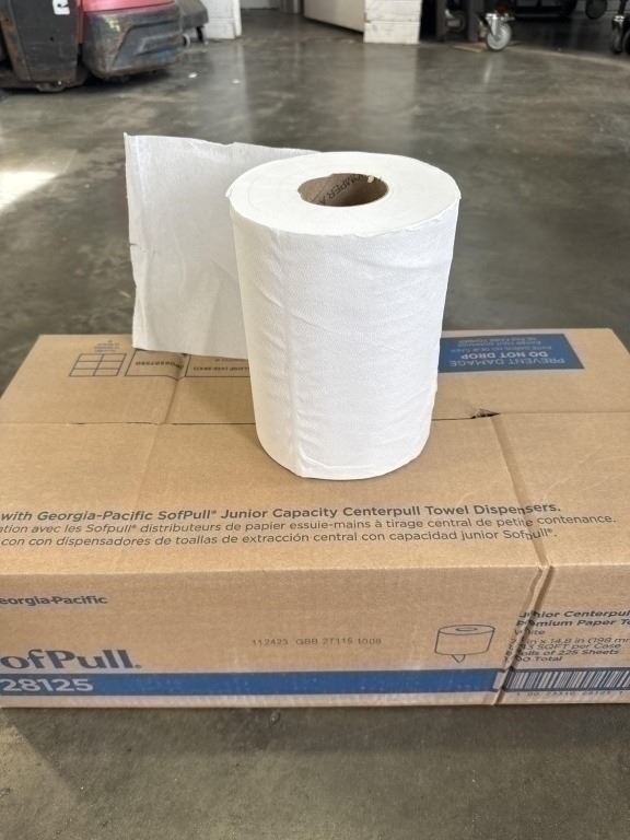 NEW CASE OF SOFPULL JUNIOR CENTERPULL PREMIUM PAPER TOWELS, WHITE 7.8 INCH X 14.8 INCH 225 SHEETS PER ROLL, 8 ROLLS PER CASE RETAIL $86