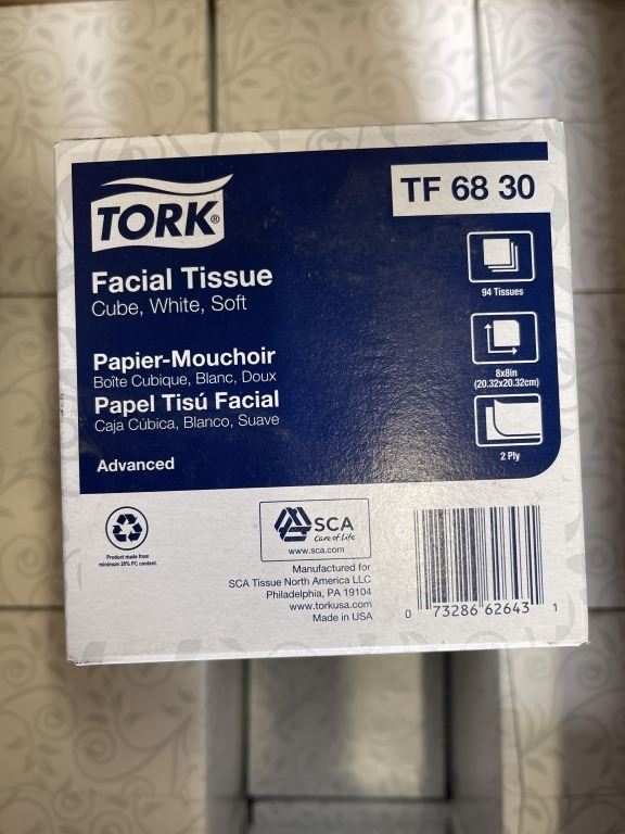 NEW CASE OF TORK FACIAL TISSUE, CUBE WHITE SOFT, 36 CUBES OF 94 TISSUES PER CASE
