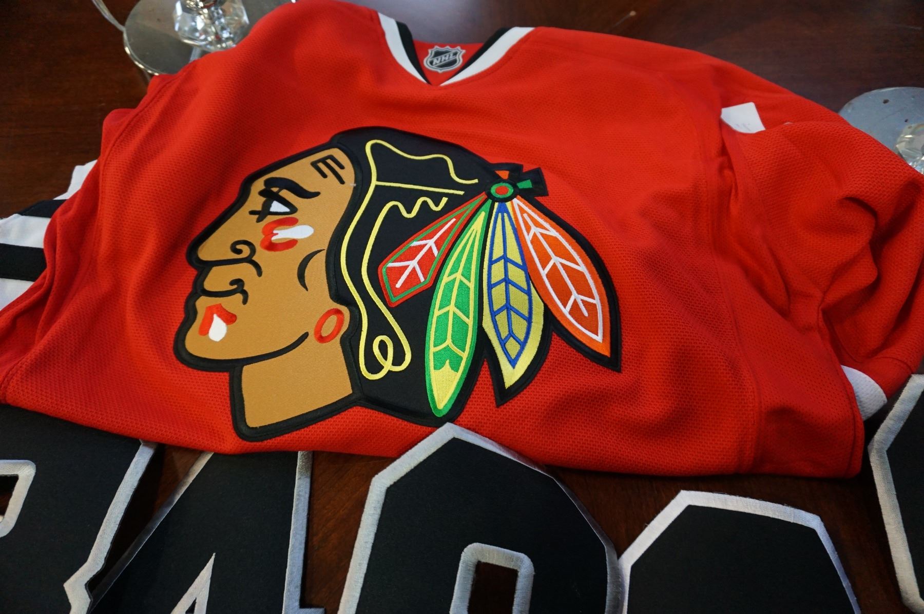 NEW CHICAGO BLACKHAWKS HOME JERSEY WITH IRON ON NUMBERS
