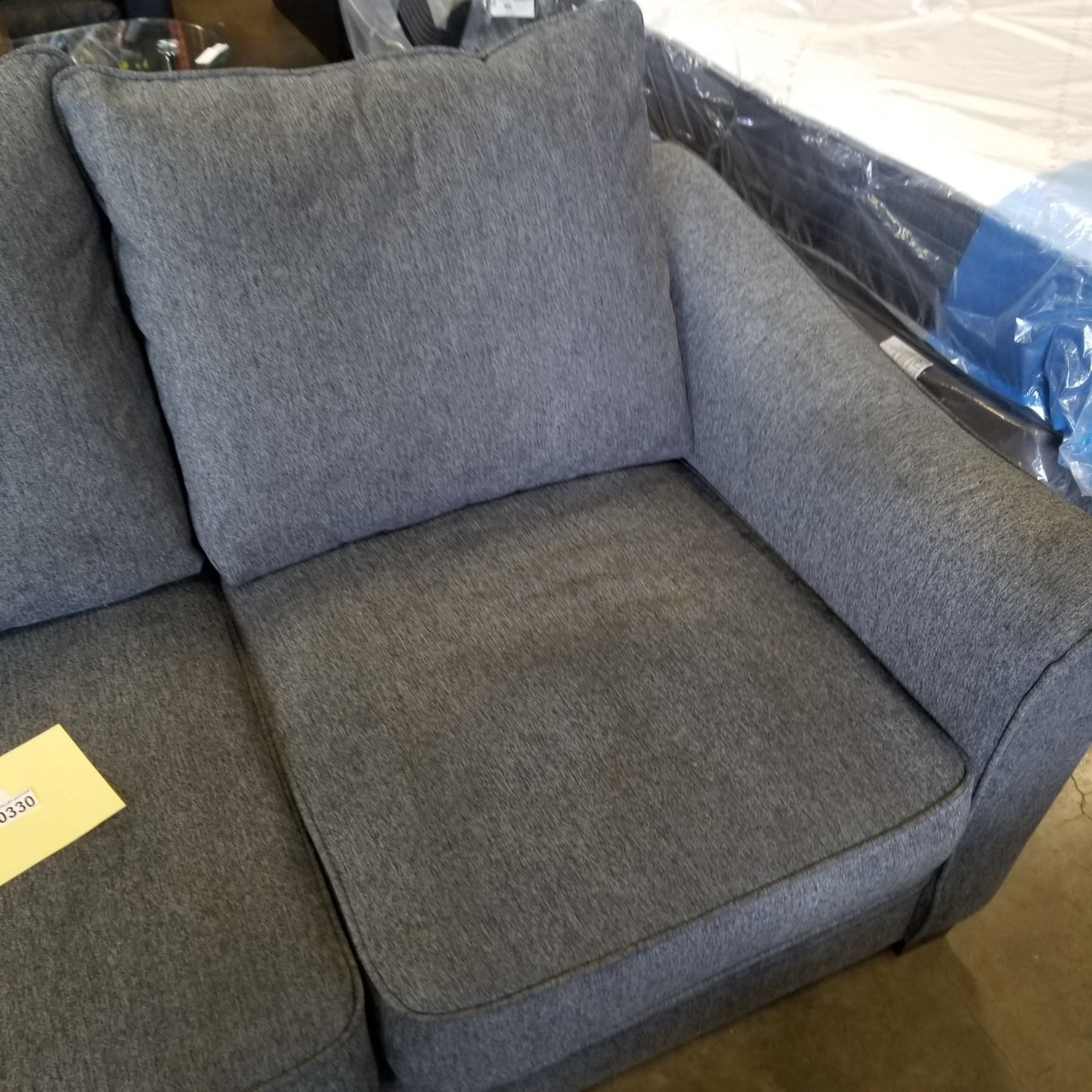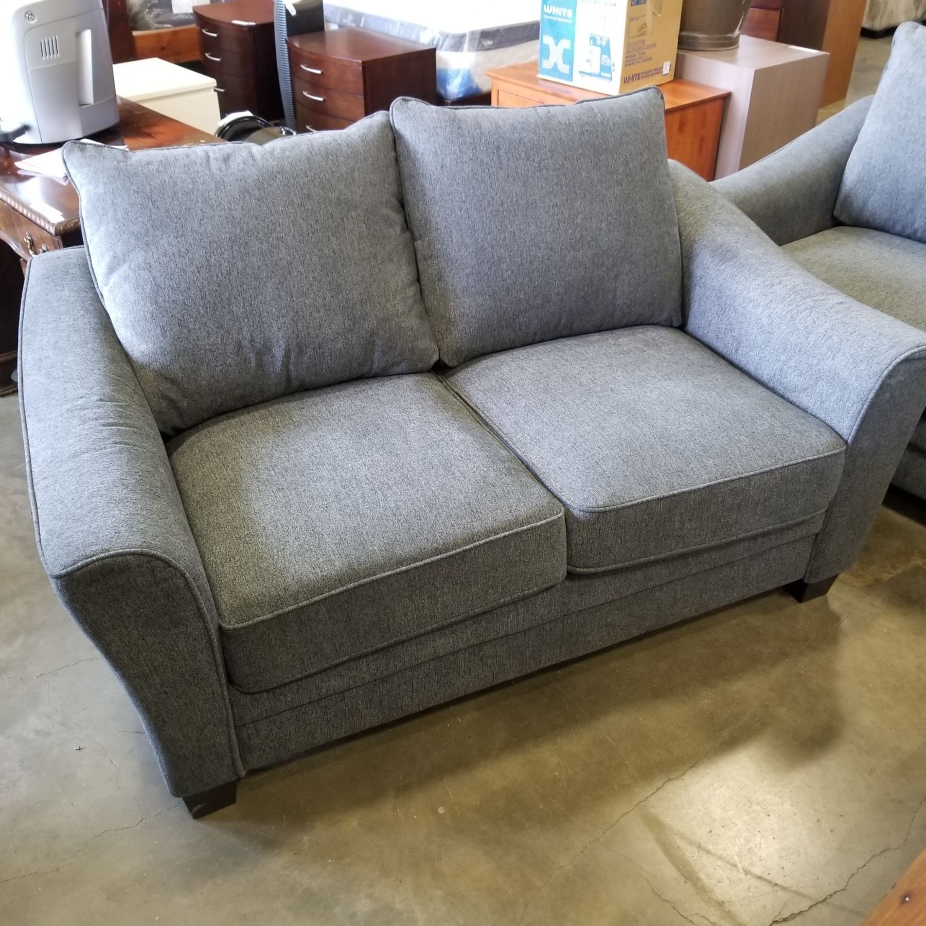 NEW CONTEMPORARY GREY FABRIC SOFA AND LOVESEAT, WITH REMOVABLE AND WASHABLE CUSHIONS, RETAIL $2499