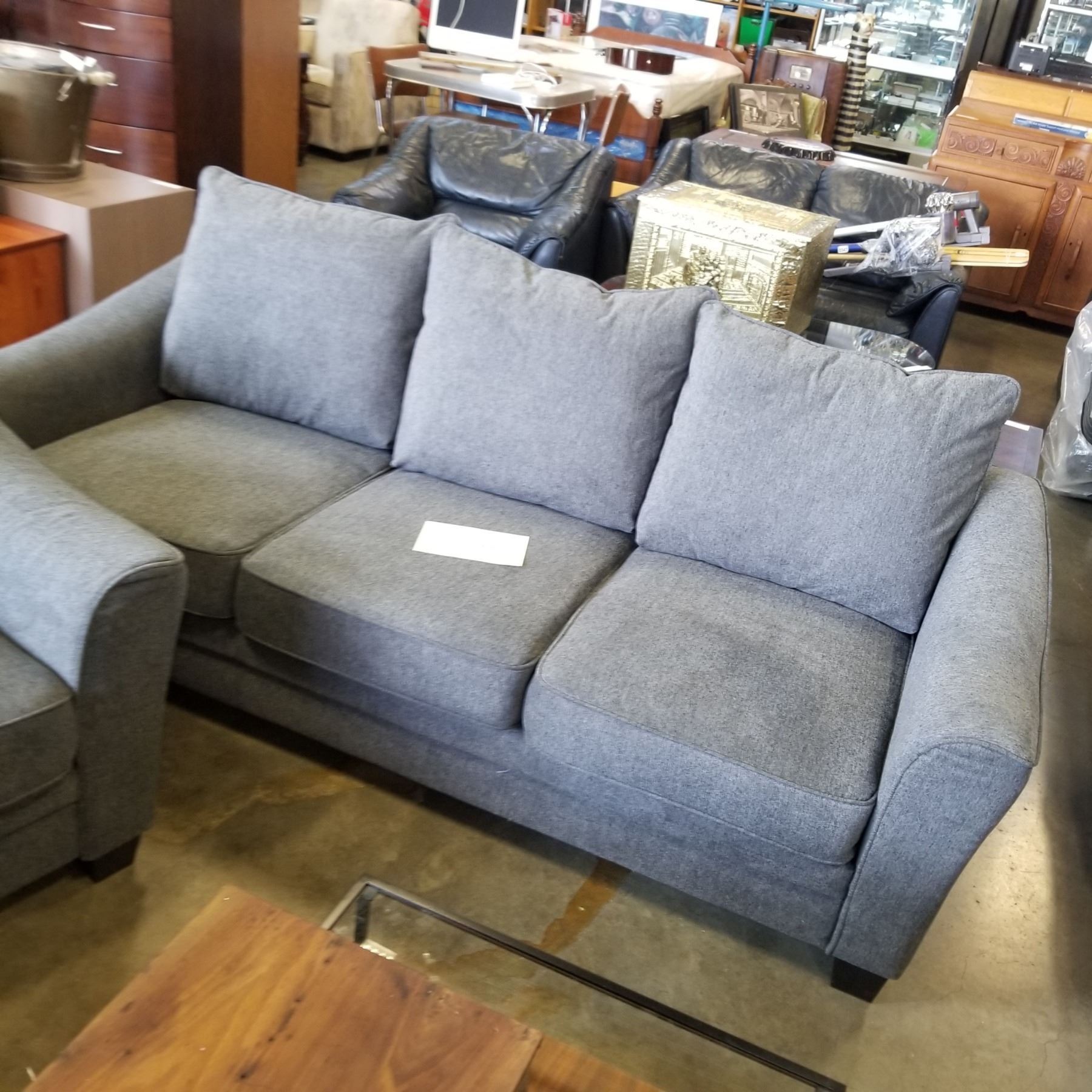 NEW CONTEMPORARY GREY FABRIC SOFA AND LOVESEAT, WITH REMOVABLE AND WASHABLE CUSHIONS, RETAIL $2499