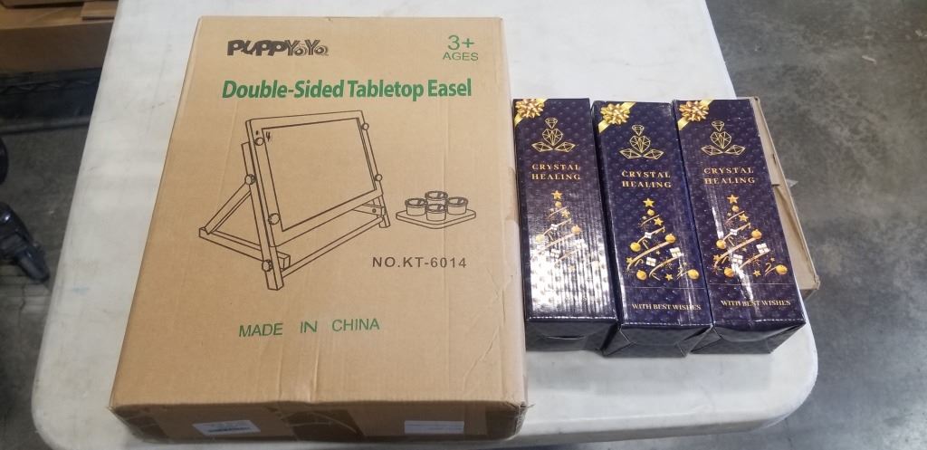NEW DOUBLE SIDED TABLETOP EASEL AND 3 TIGER'S EYE TREES