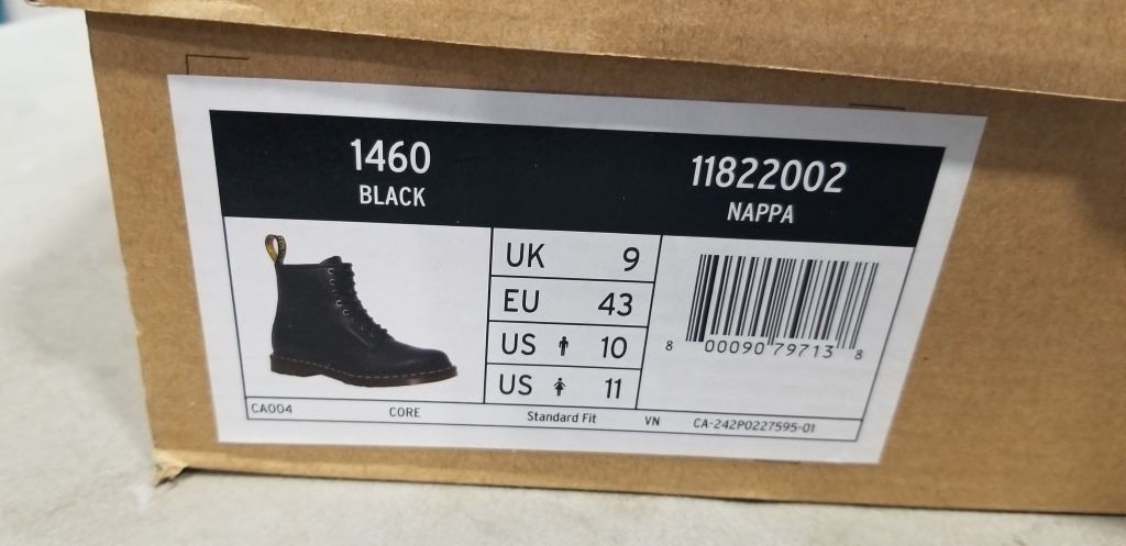 NEW DR. MARTENS 1460 BLACK NAPPA LEATHER BOOT, SIZE US MENS 10, LADIES 11