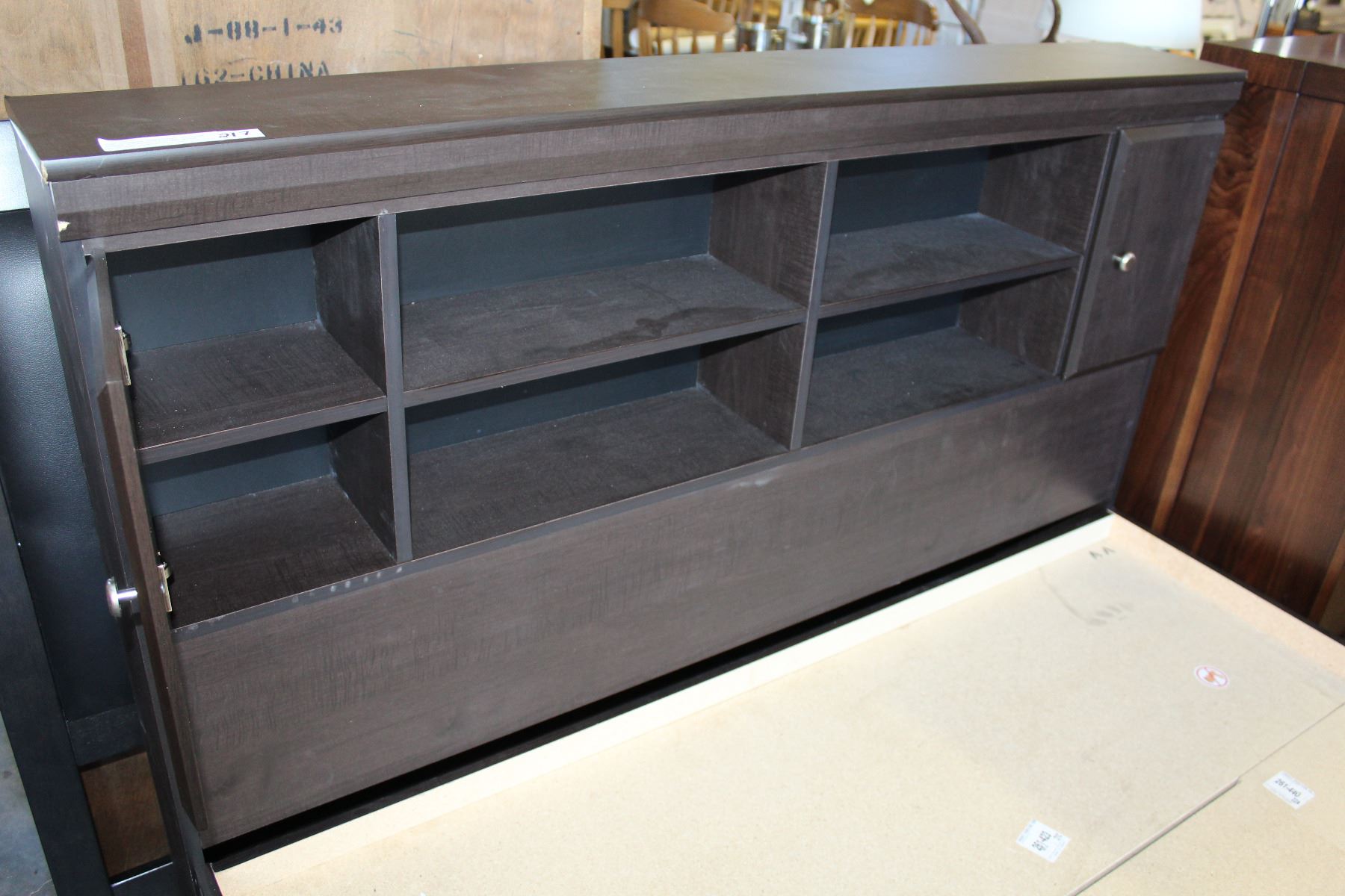 NEW DYNAMIC FURNITURE CYPRESS QUEEN STORAGE BEDFAME WITH BOOKCASE HEADBOARD, AND 12 UNDER BED STORAG