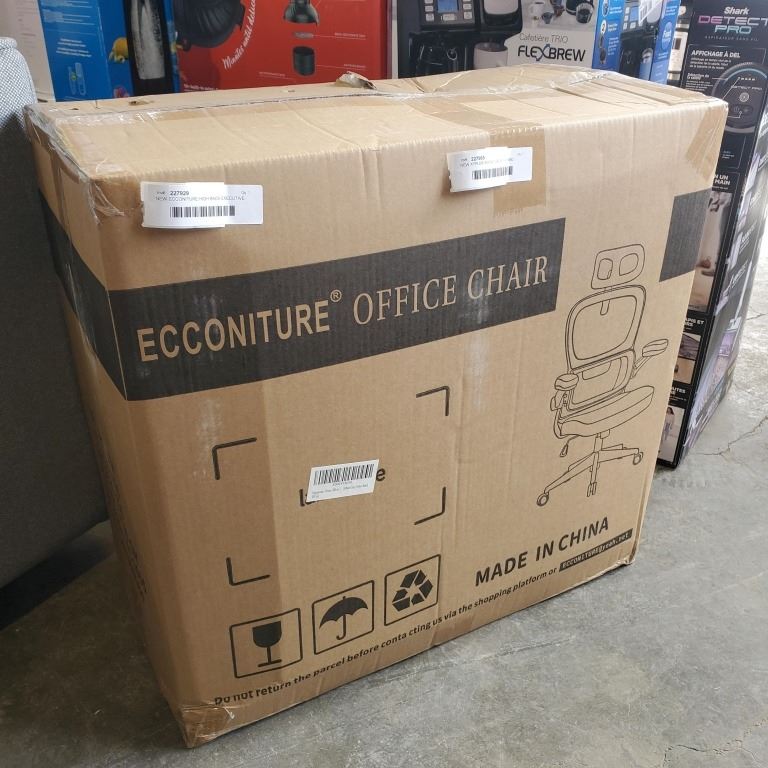 NEW ECCONITURE HIGH BACK EXECUTIVE MESH BACK OFFICE CHAIR WITH LUMBAR SUPPORT, WHITE/ GREY RETAIL $349