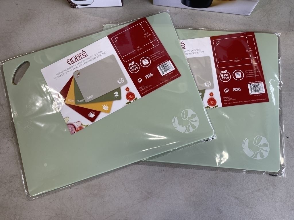 NEW EPARE OIL AND VINEGAR GLASS JAR SET, STAINLESS METAL COFFEE GRINDER, AND 2 3PC CUTTING BOARD SETS, BPA FREE, DISHWASHER SAFE