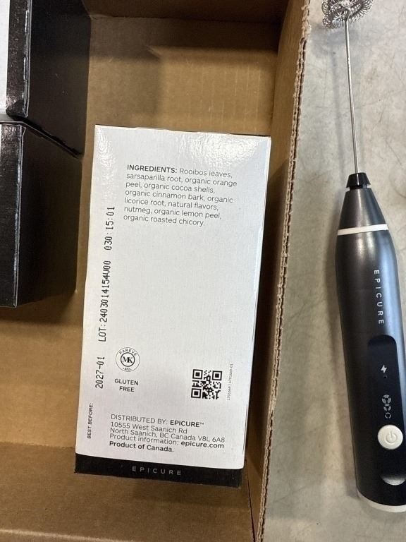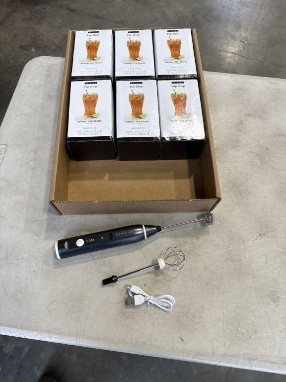 NEW EPICURE AIR WAND RECHARGEABLE TYPE C FROTHER / MIXER, AND 6 BOXES OF HERBAL TEA BLEND, 20 BAGS P