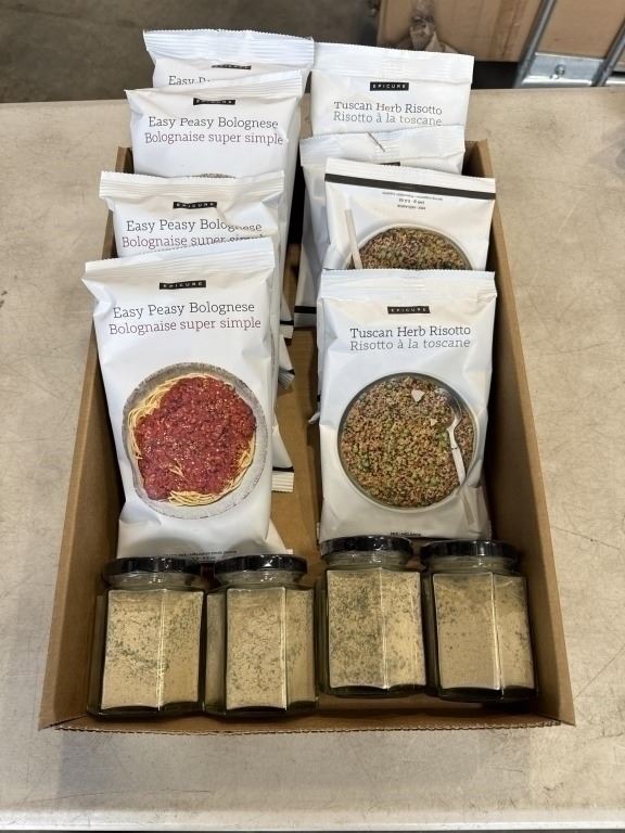 NEW EPICURE NON-PERISHABLE EASY PEASY BOLOGNESE SAUCE (4 X 6 SERVING POUCH), TUSCAN HERB RISOTTO (4 X 4 SERVING POUCH, AND 4 EPICURE COOL CREMA MIX JARS RETAIL VALUE $120+