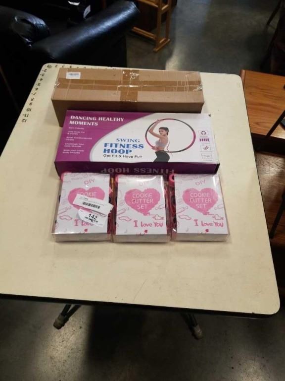 NEW FITNESS HOOP, 3 SETS OF COOKIE CUTTERS AND HOME GYM CABLE