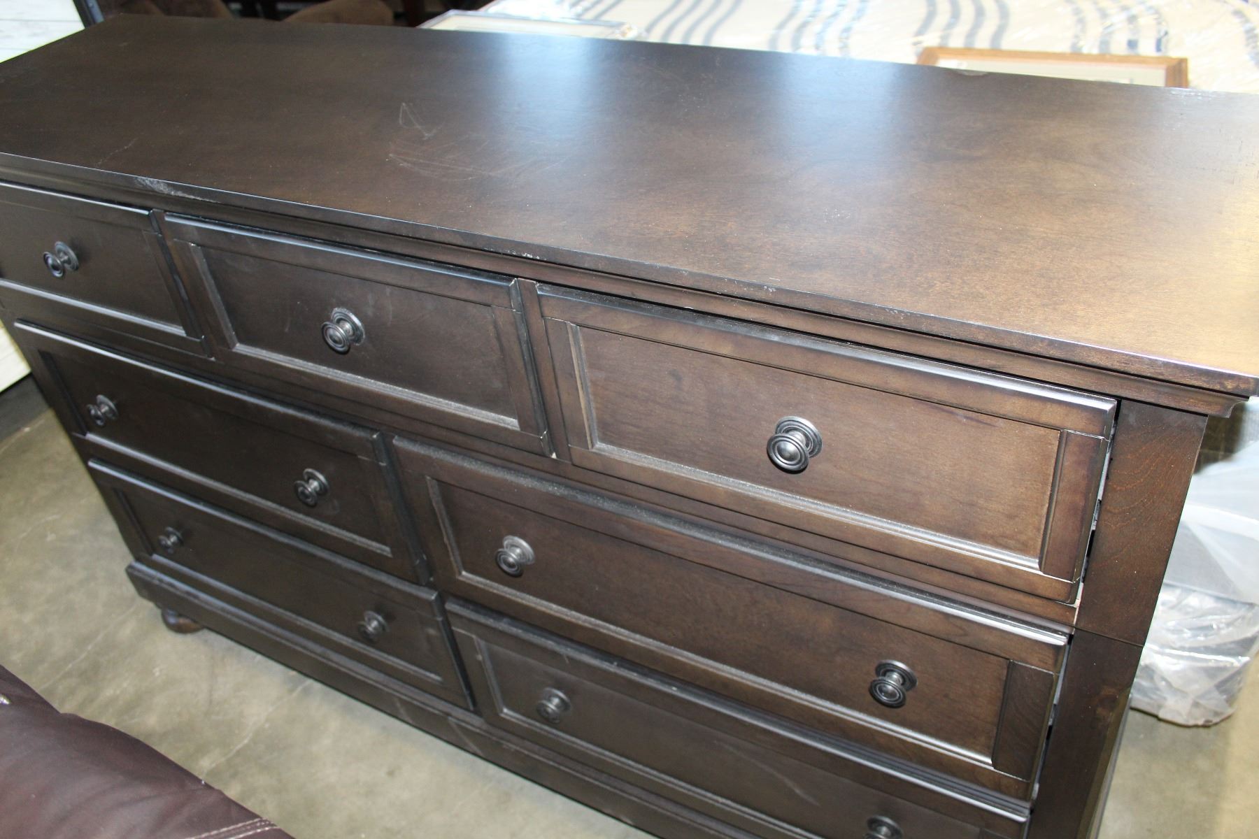NEW FLOOR MODEL HOME ELEGANCE MODERN DARK FINISH 7 DRAWER SOLID WOOD DRESSER RETAIL $1399