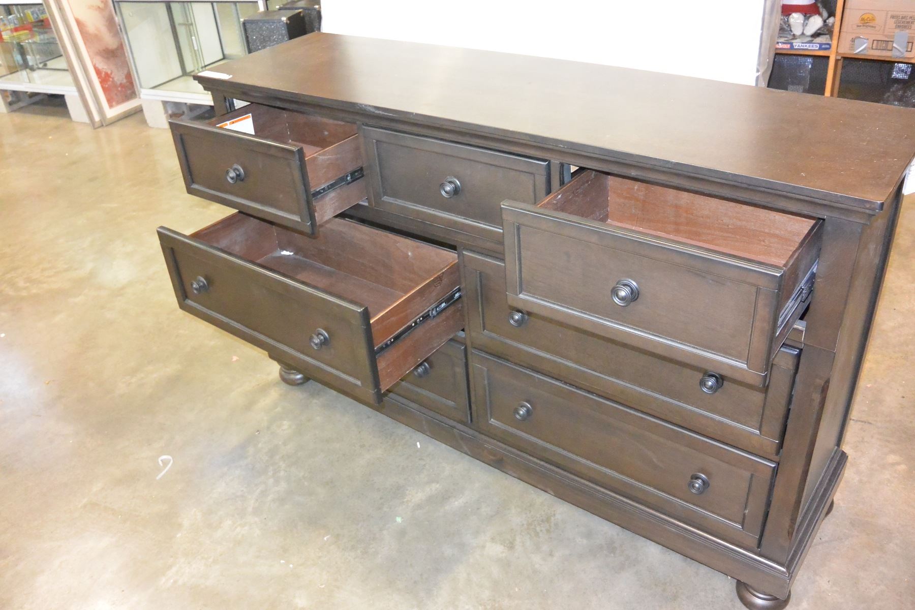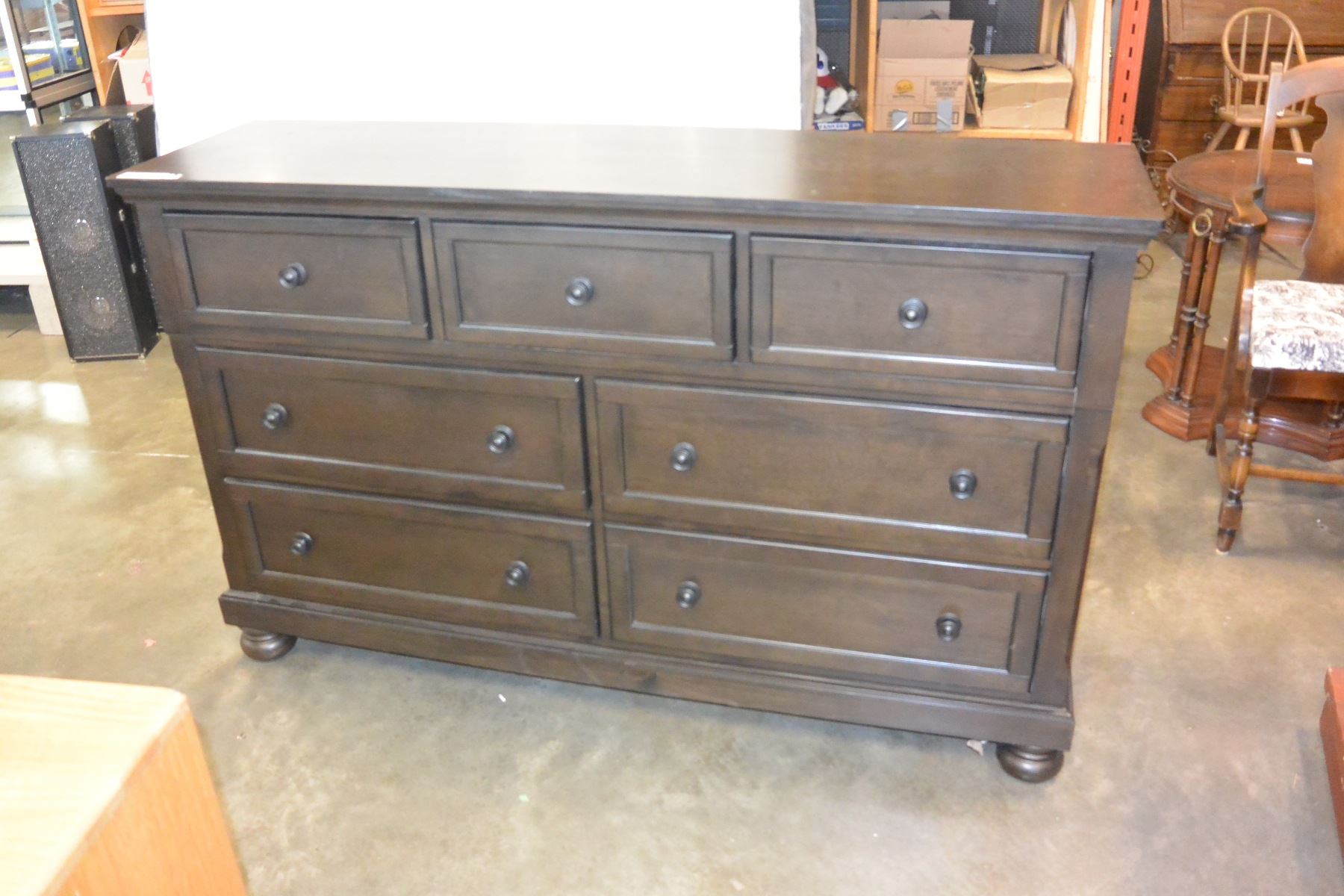 NEW FLOOR MODEL HOME ELEGANCE MODERN DARK FINISH 7 DRAWER SOLID WOOD DRESSER RETAIL $1399