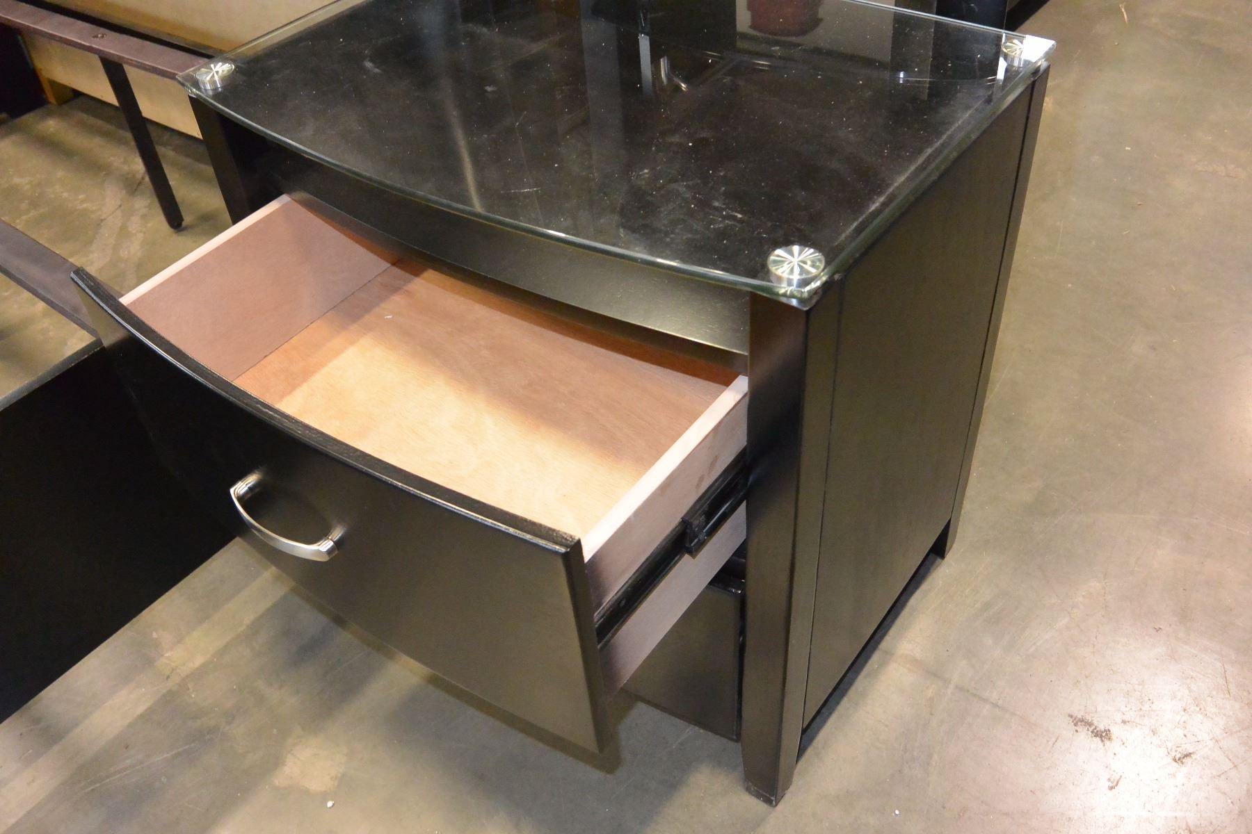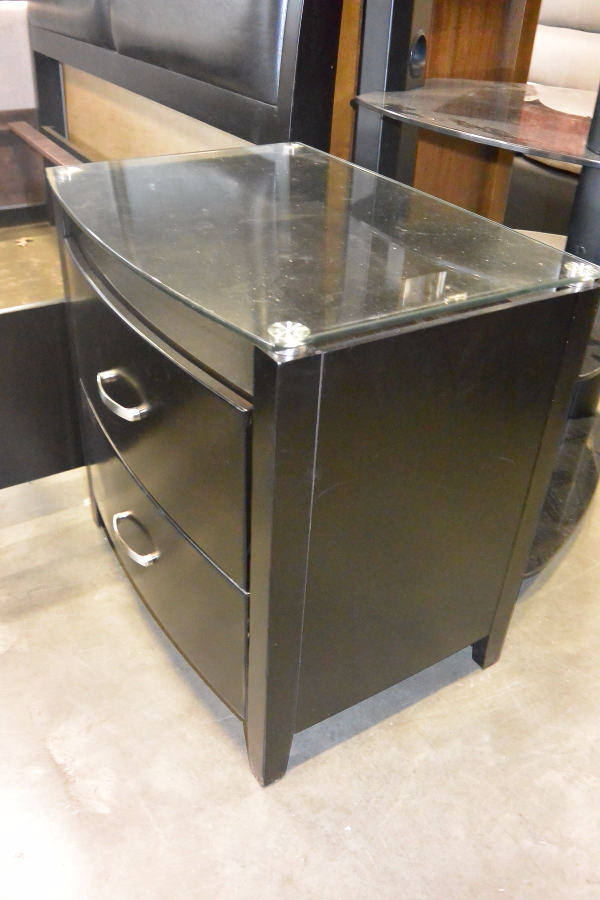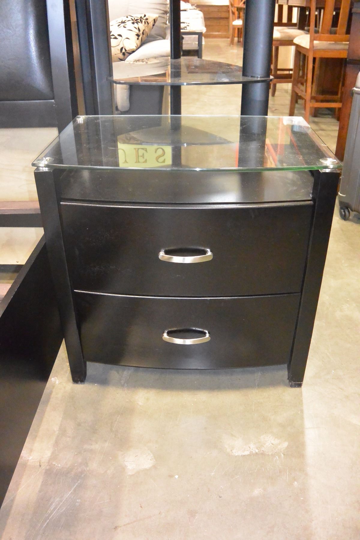 NEW FLOOR MODEL MODERN 2 DRAWER GLASS TOP ENDTABLE RETAIL $349